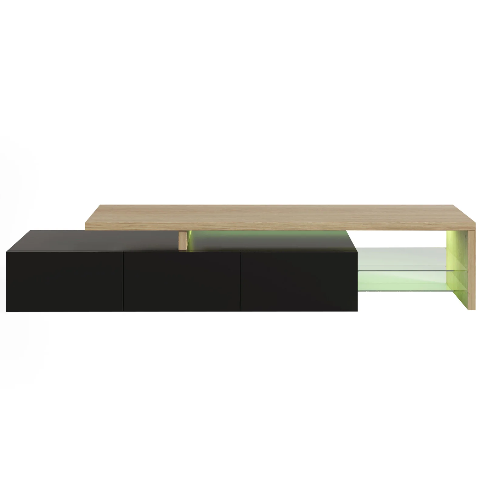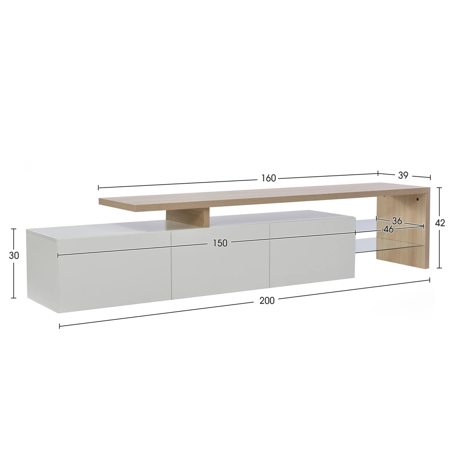 1. Our LED and functional TV stand offers the perfect solution for your entertainment electronics. With a total length of 197.5 cm, a depth of 39 cm and a height of 42 cm, this piece of furniture offers plenty of space for your TV, multimedia devices and other essentials in the living room.