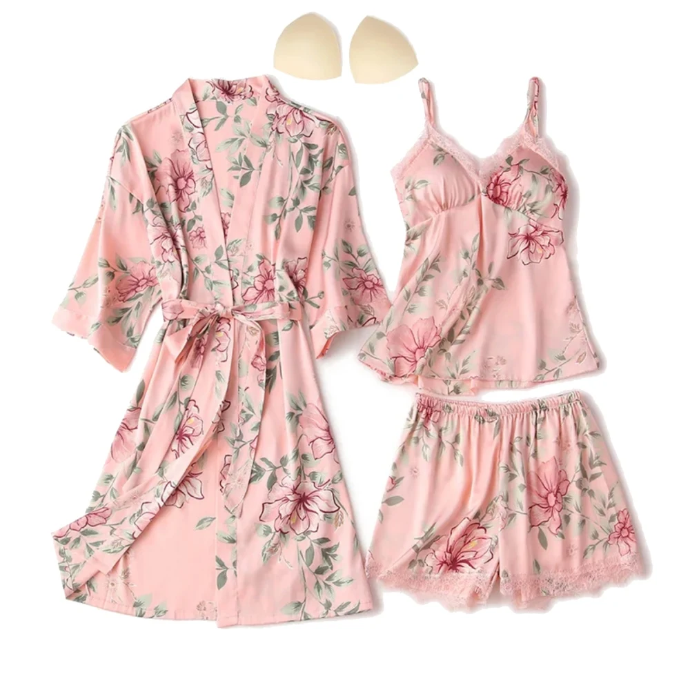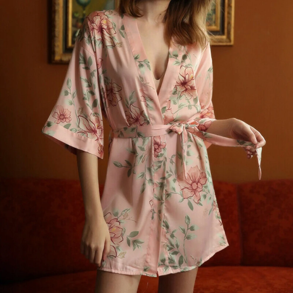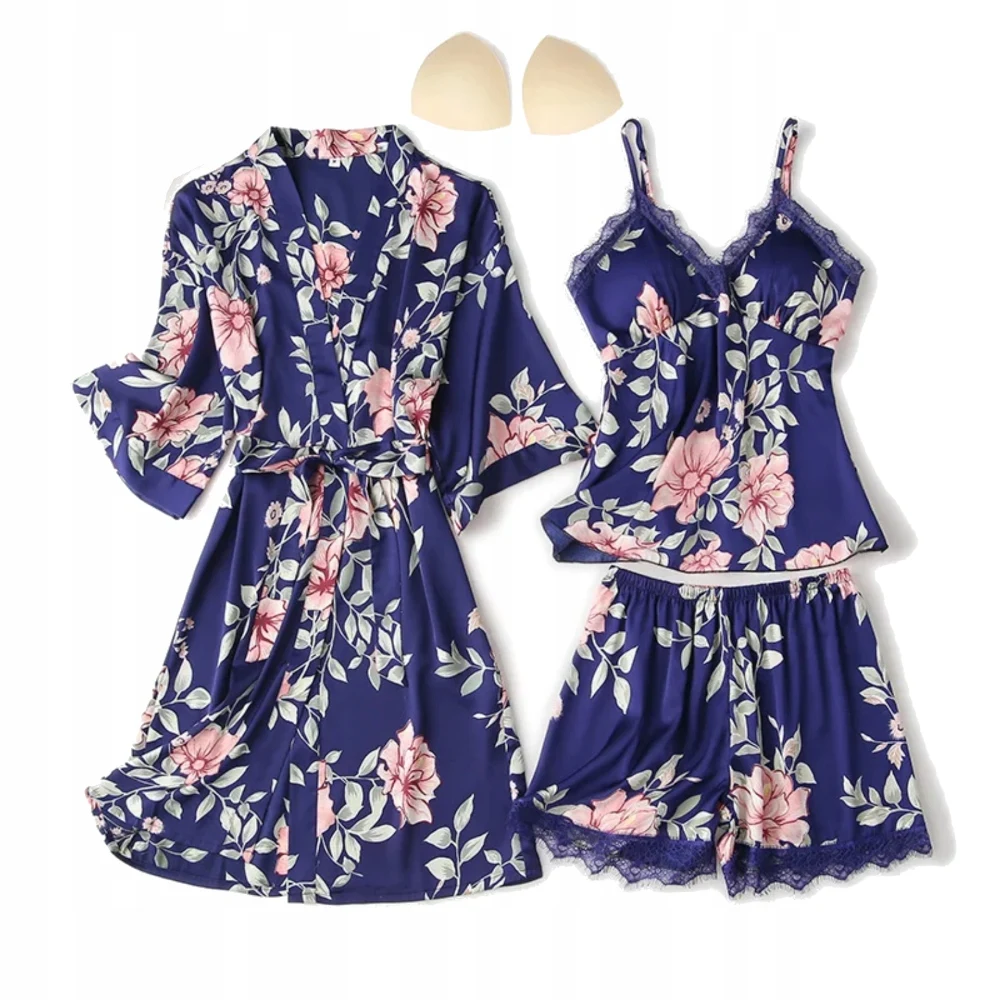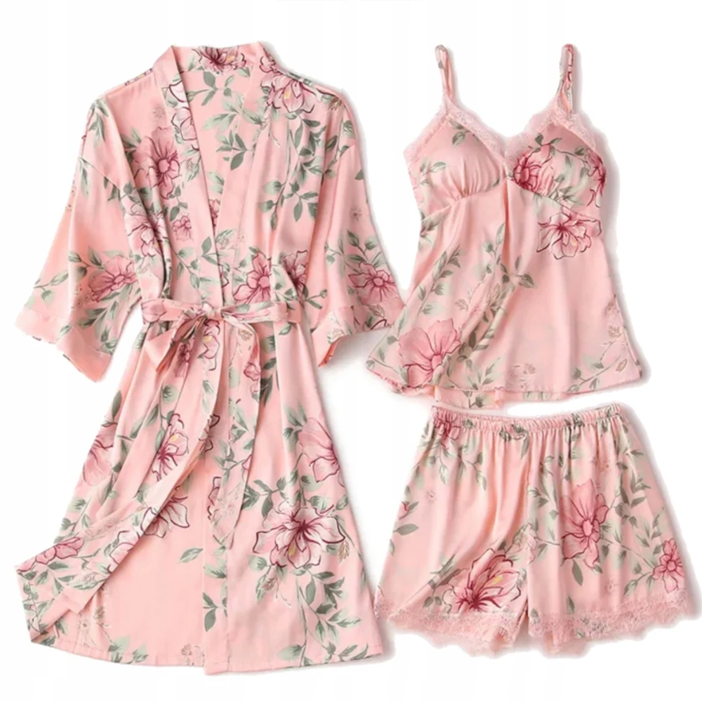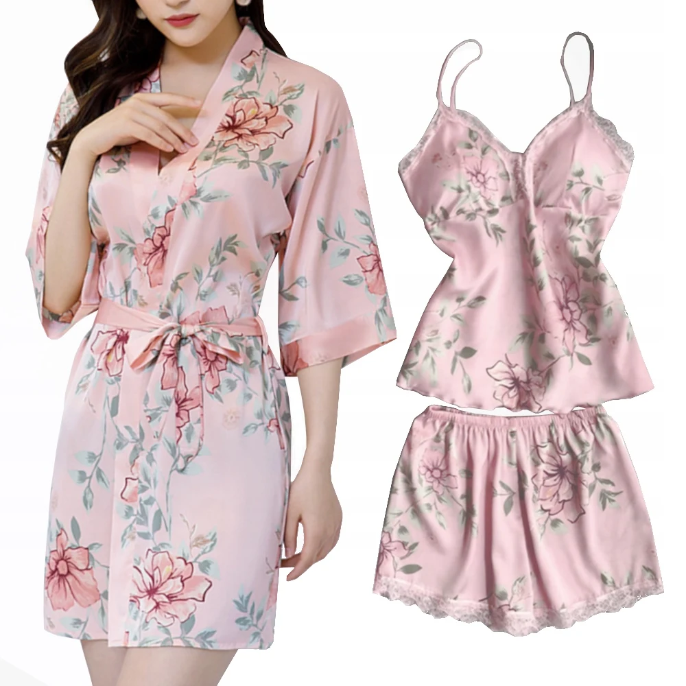 ❤️ We presentStylish setPajamas: T-shirt with short shorts plus a bathrobe with a floral motif.