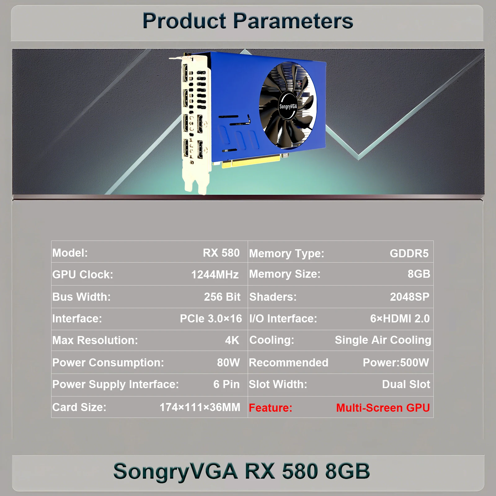 SongryVGA RX 580 4/8GB GDDR5 Multi-Display Graphics Card