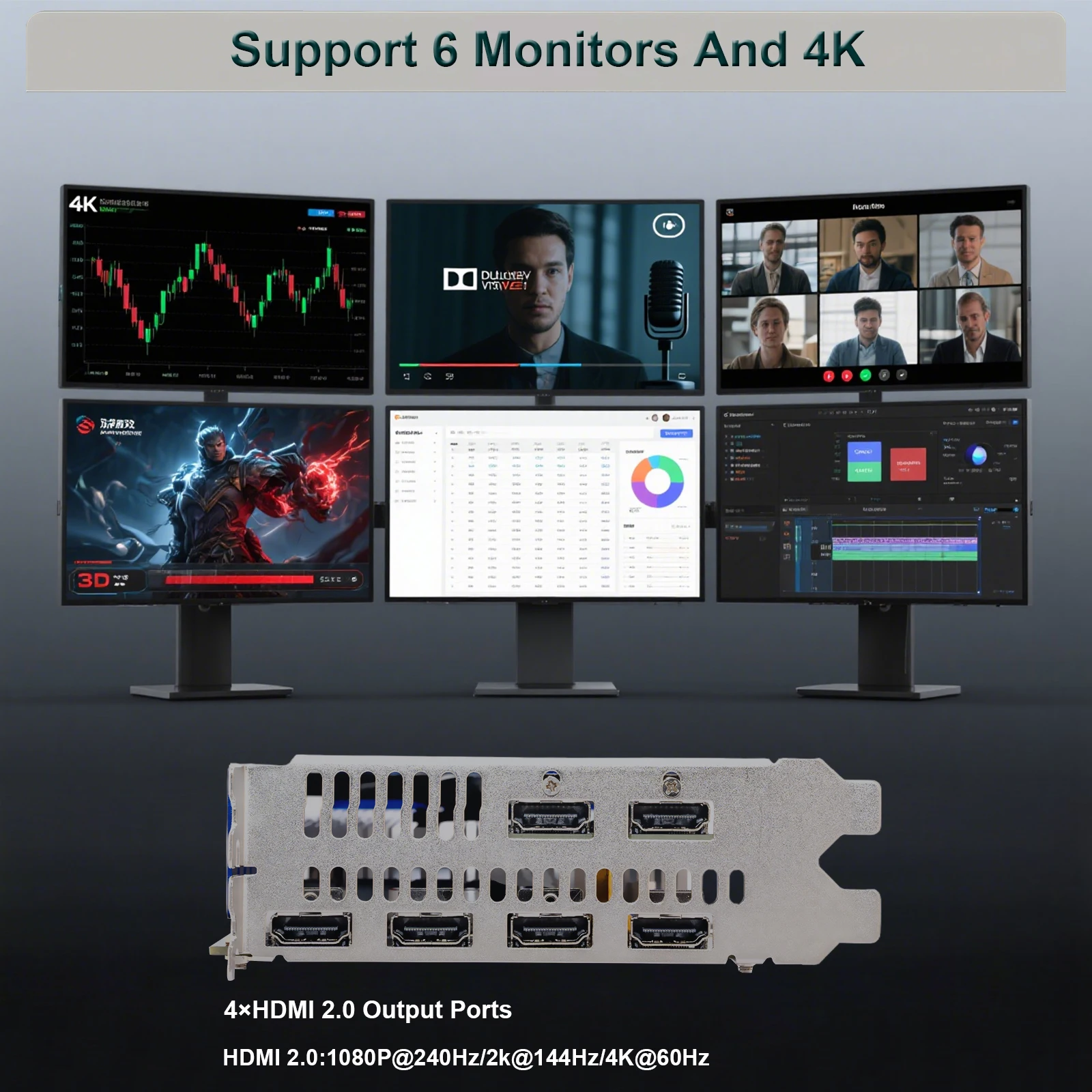 - Output Interface Type: HDMI 2.0×2,HDMI 2.0×4