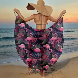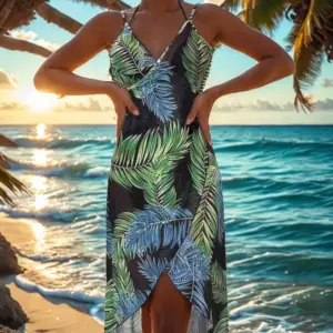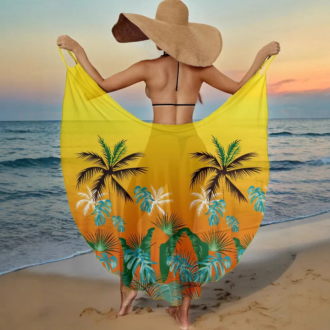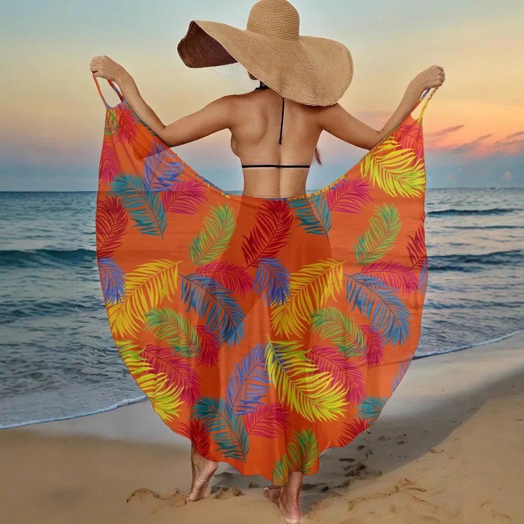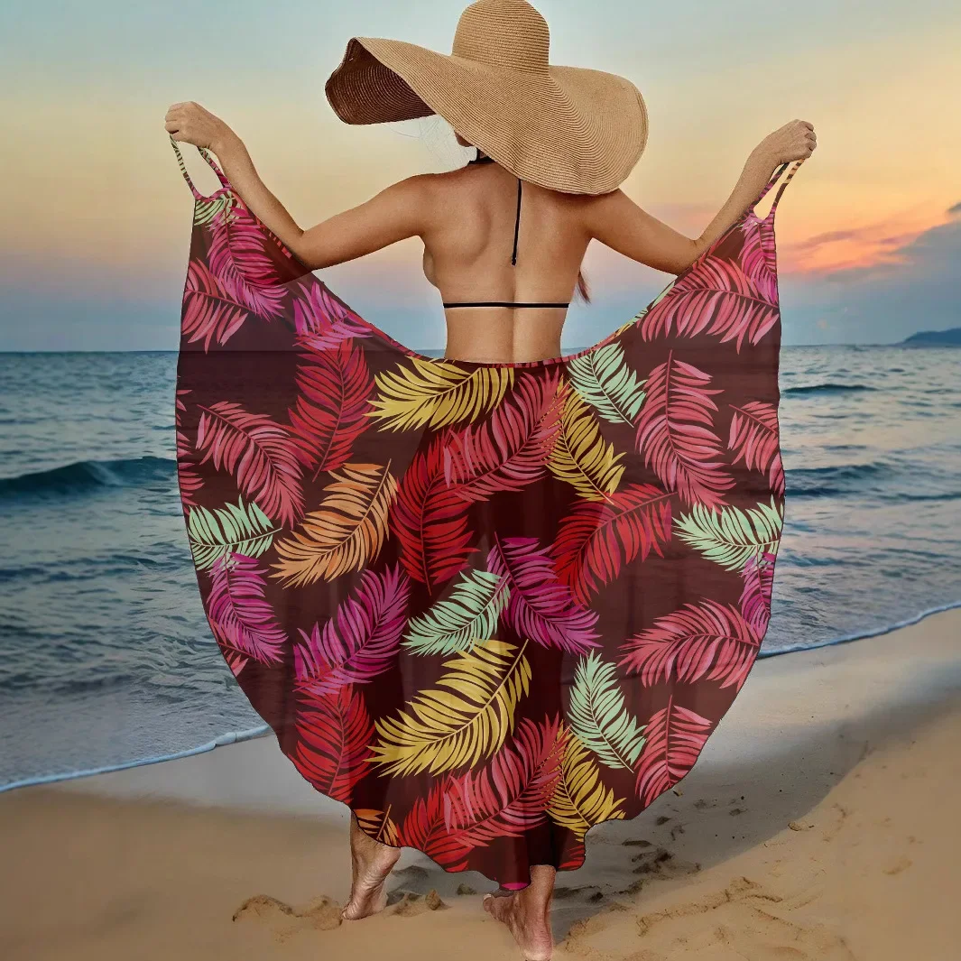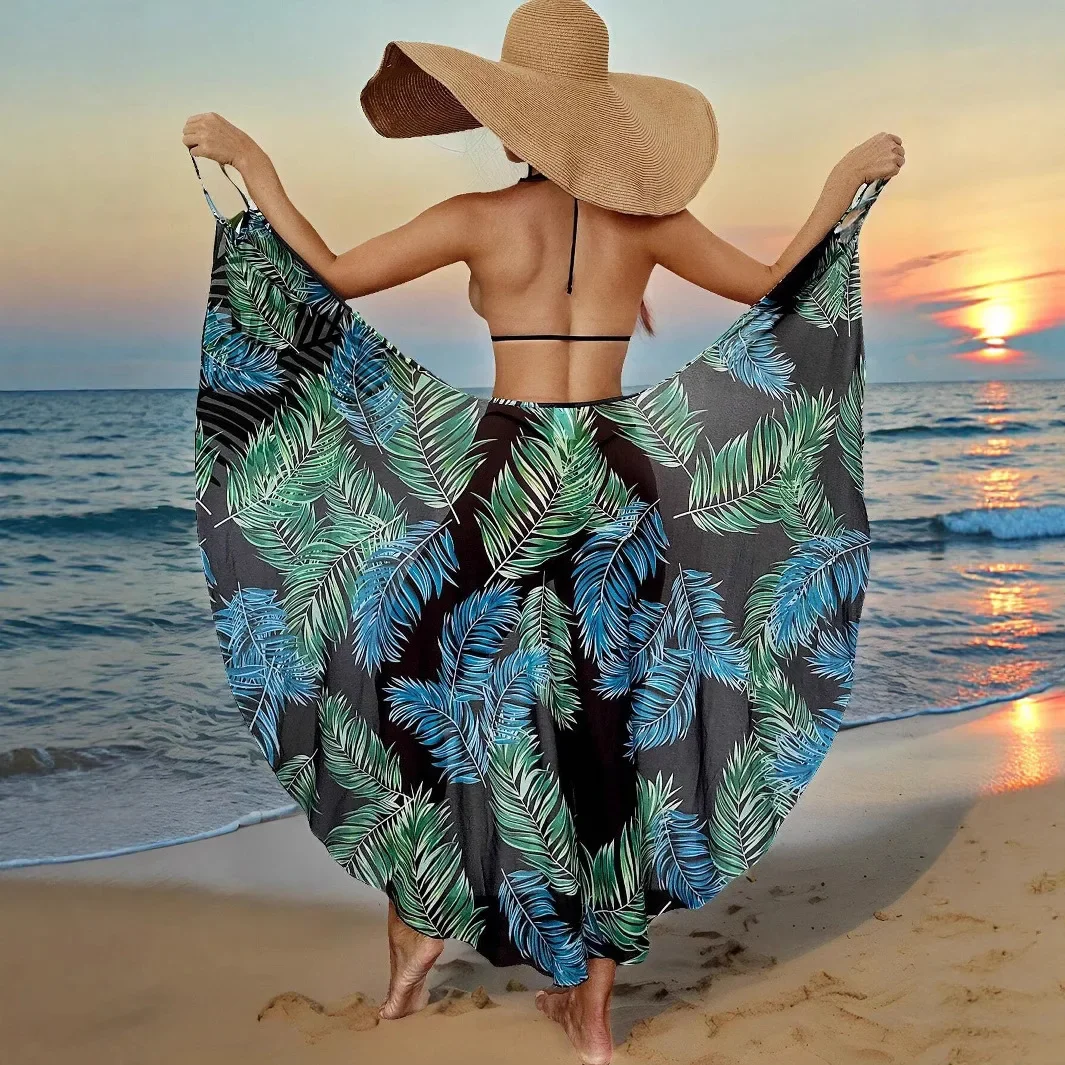 Letnie narzutki plażowe, seksowne damskie sukienki z nadrukiem liści, narzutka na bikini z ochroną przeciwsłoneczną, sarongi, kostium kąpielowy