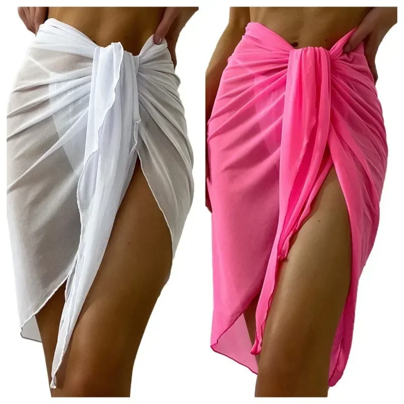 Letnia sukienka plażowa z wiązaniem, przezroczysta, z wiązaniem w talii, narzutka na strój kąpielowy, spódnica, otulacz do bikini, szalik, narzutka na strój kąpielowy, damskie szale do bikini