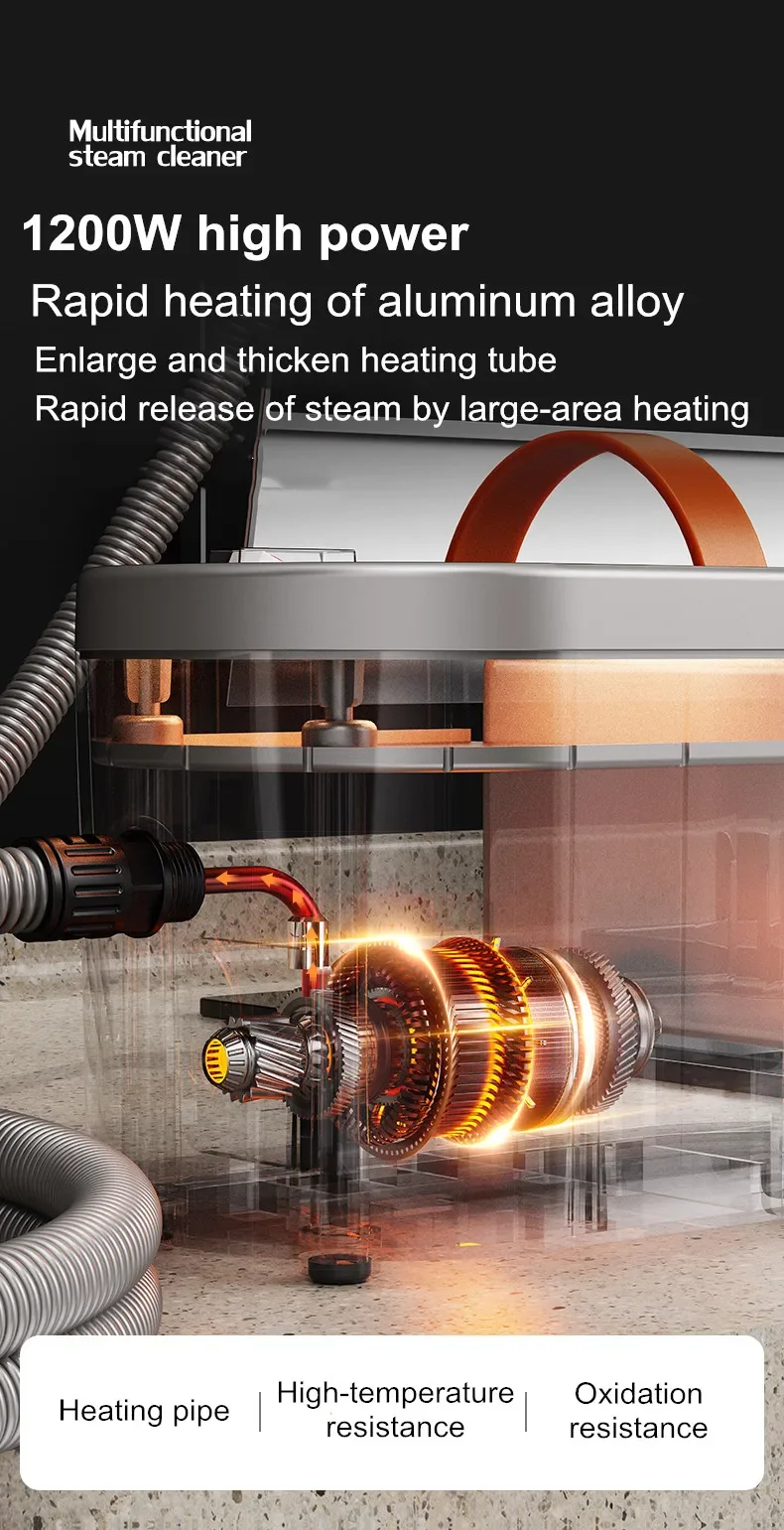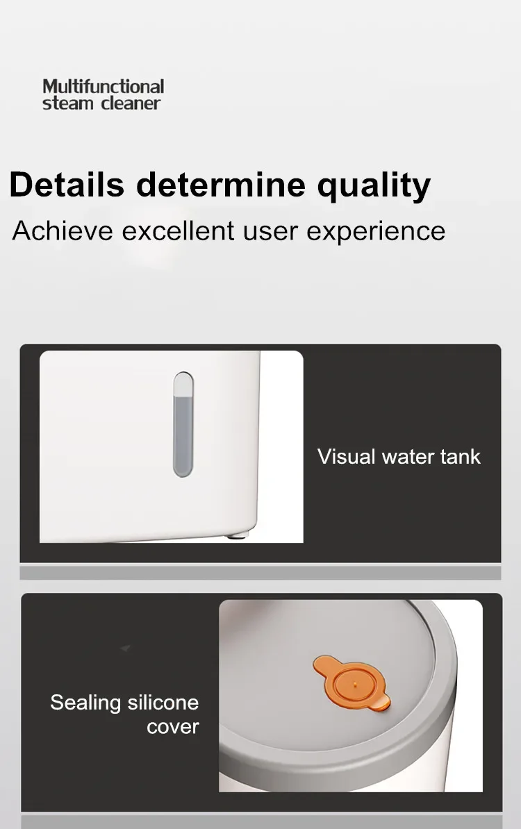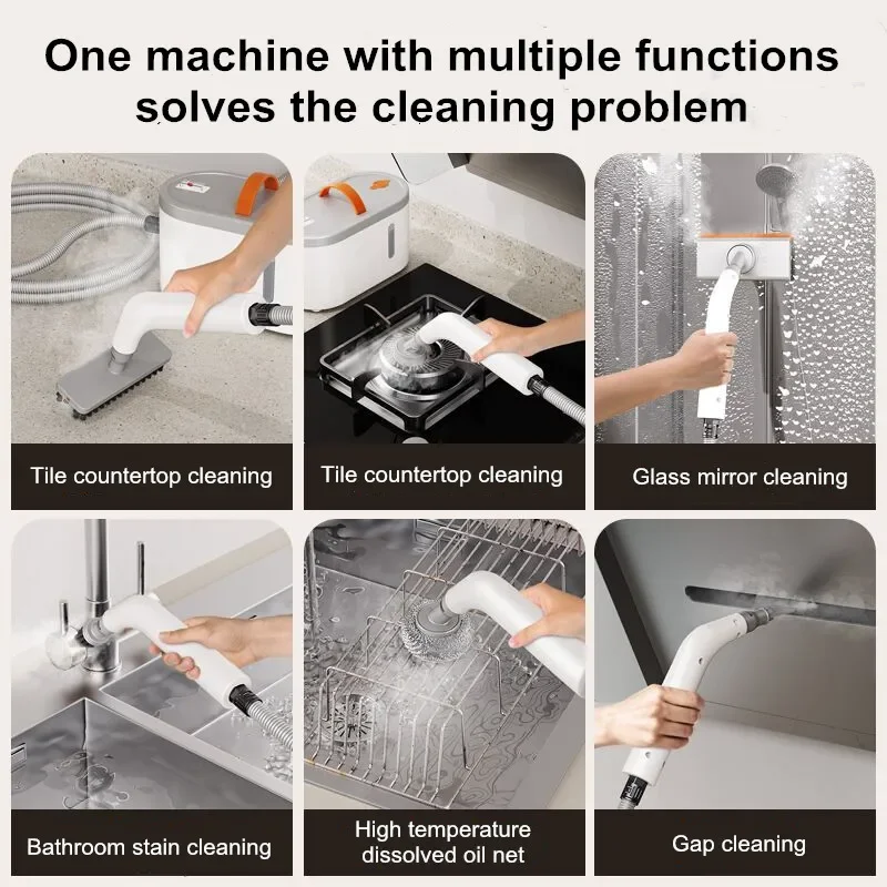 1.Deep Cleaning Power: The steam cleaner penetrates deep into surfaces to remove dirt, dust and stains without the use of harsh chemicals.