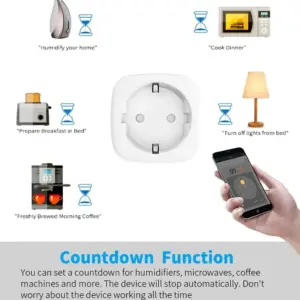 The smart WIFI plug socket is perfectly compatible with Alexa and so on. Just simply give a voice command to your Alexa Assistant to control your devices when you are on go.