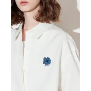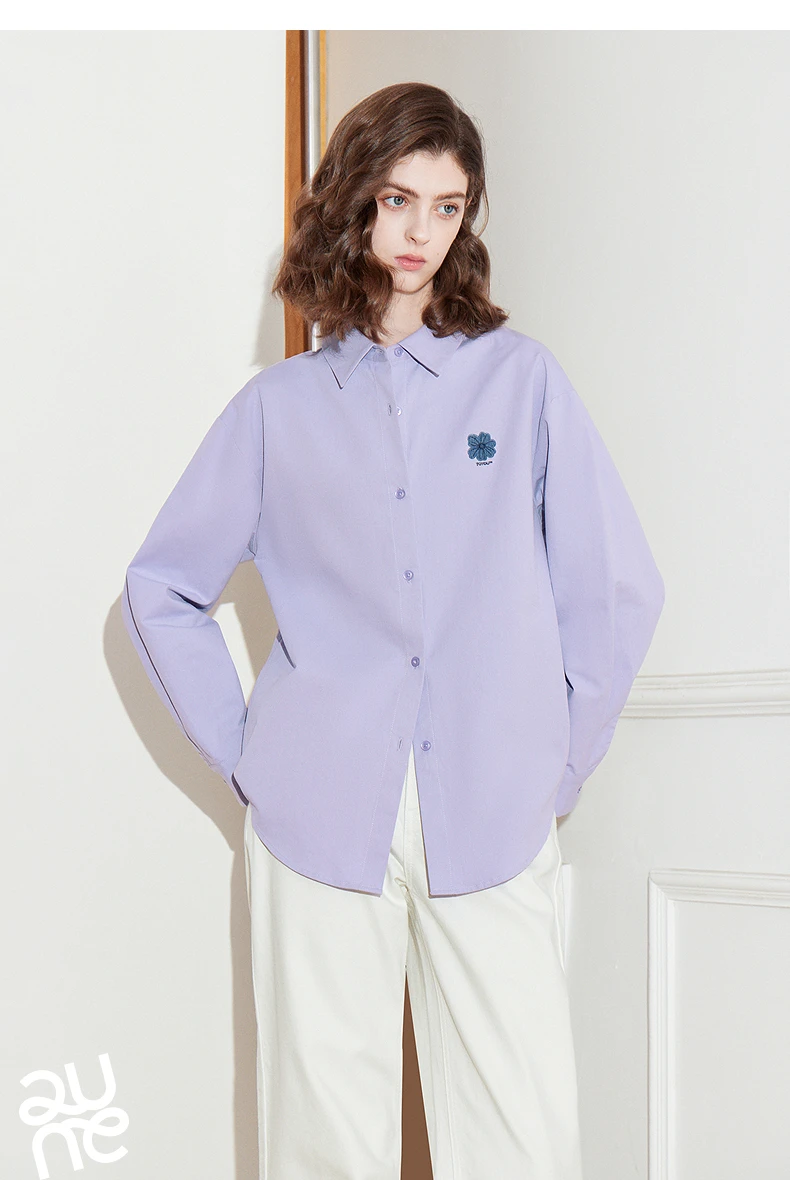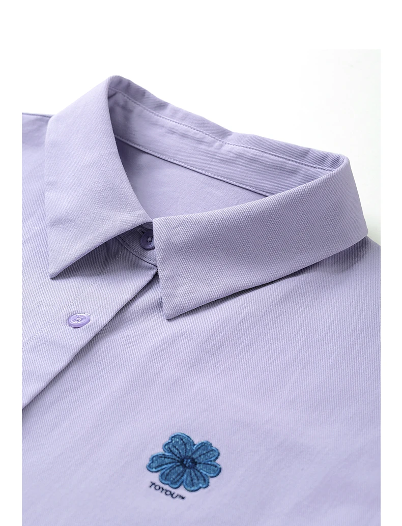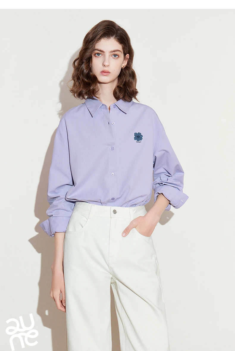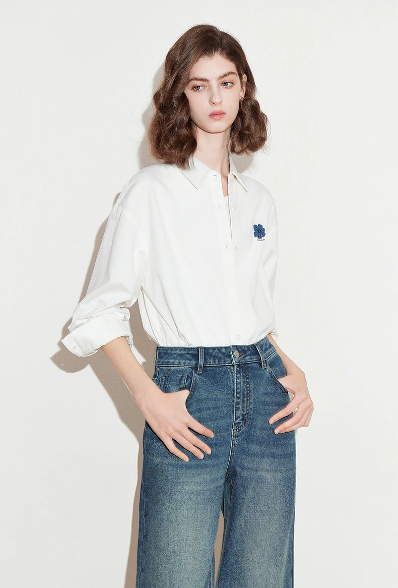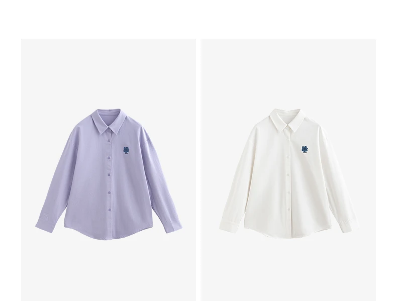 TOYOUTH Women Blouse Shirt 2025 Spring New Flower Embroidered Turn Down Collar Pure Cotton White Casual Shirt