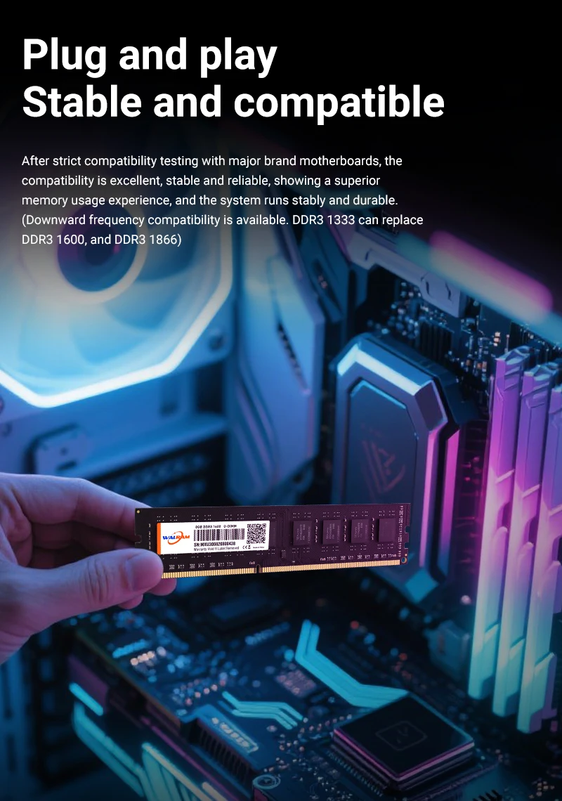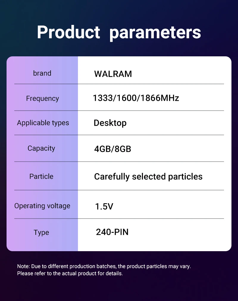 • High Memory Capacity :The WALRAM DDR3 RAM boasts a high memory capacity of up to 32GB, ensuring smooth operation for your desktop computer.