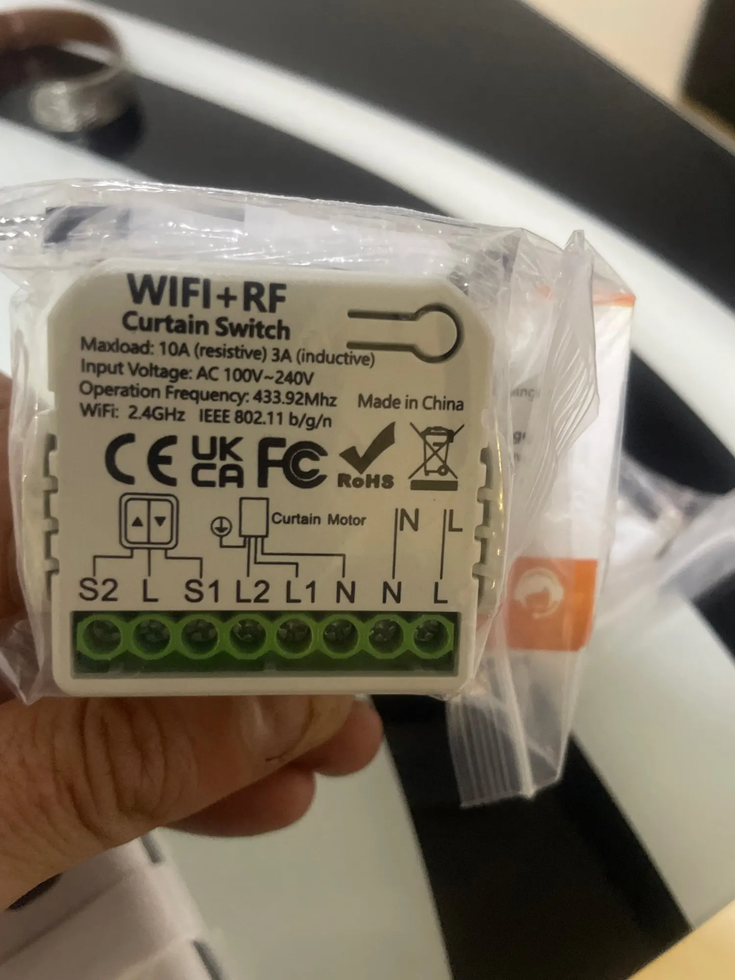 Redesigned wiring ports make wiring extremely simple,It has 3 separate wiring areas. The 3 ports on the left are for a traditional wired wall switch, the three ports in the middle are for Curtain/AC motors, and the two ports on the right are for L N inputs.