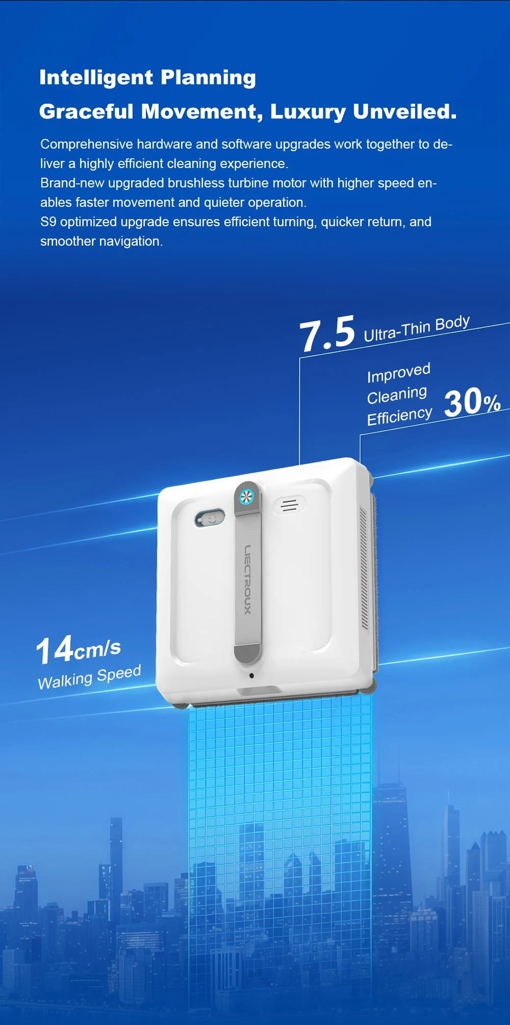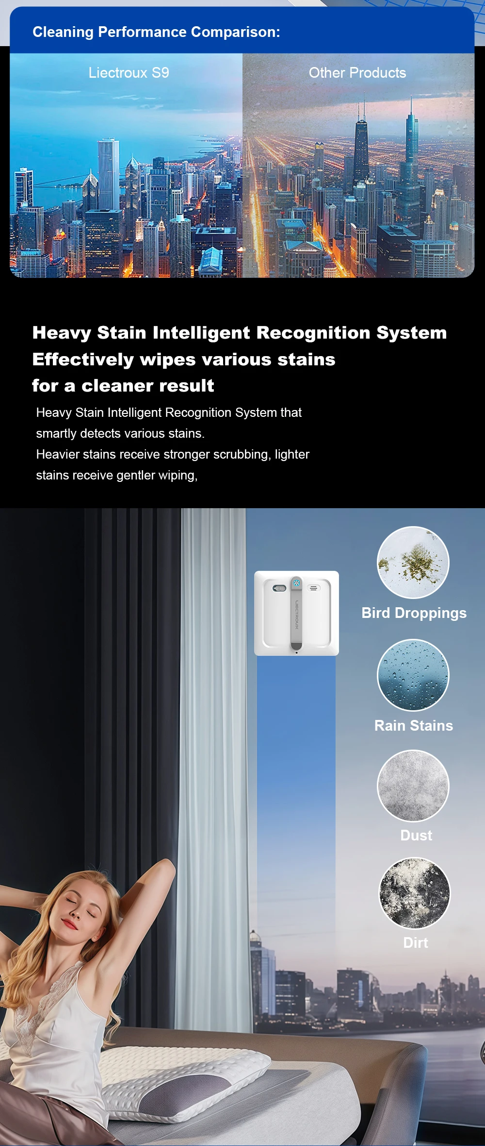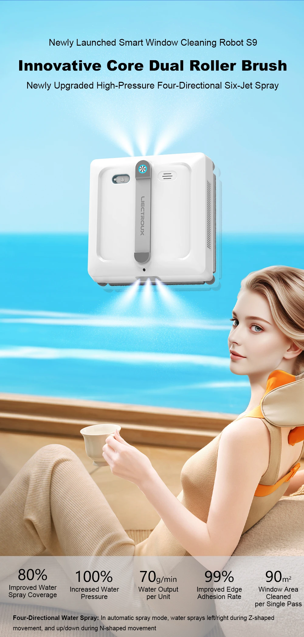 Window cleaning robot Liectroux S9,with 2 roller brushes,6-way water pump spray,9KPa,frameless works,app control