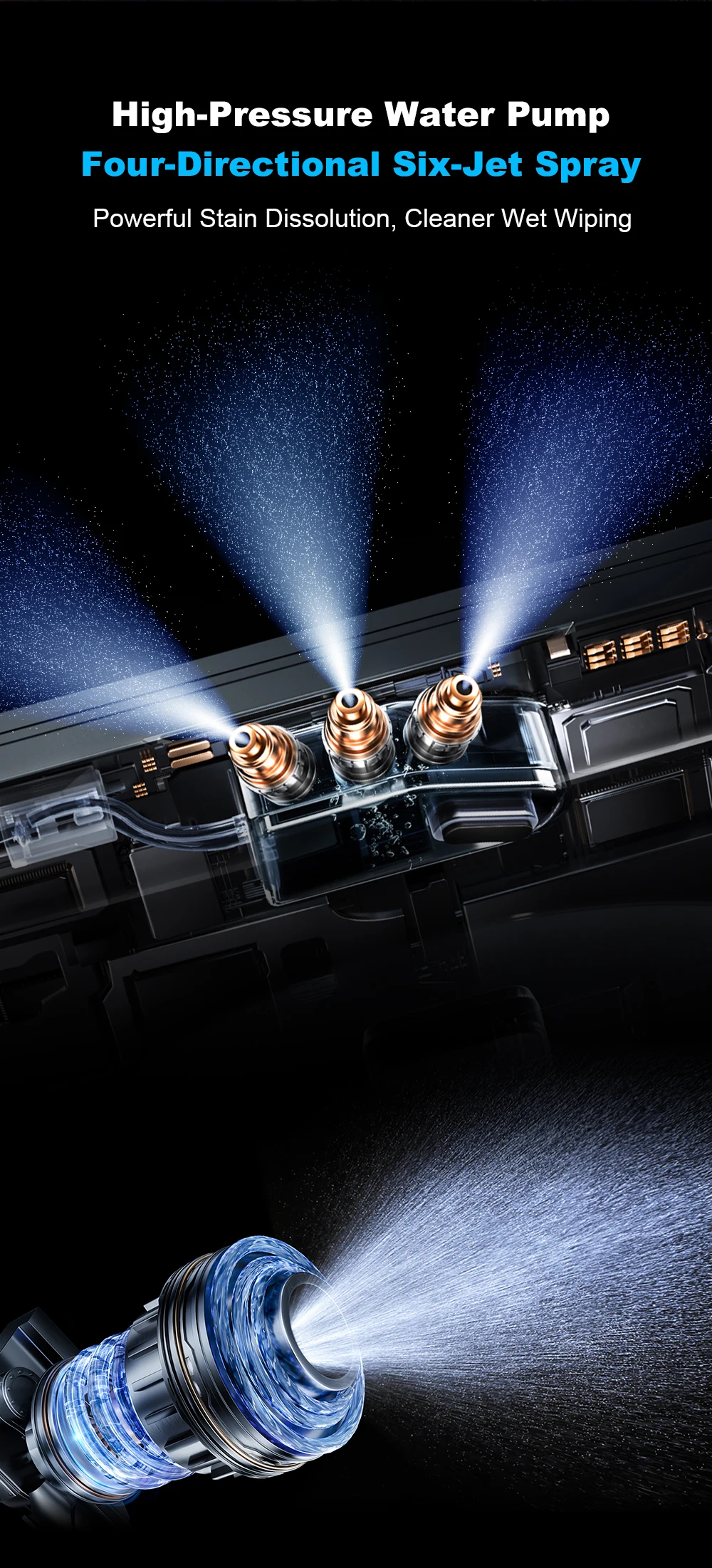13. 4-Directional6-way waterspray, with three nozzles on each side, changed from the previous atomizing blade to water pumpfor spraying. Suitable for multiple media and not easily clogged;