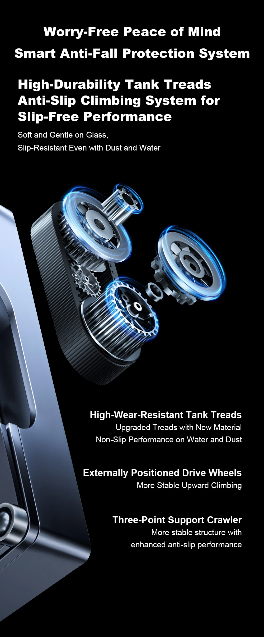 8. Long safety rope keeps the robot from falling down in critical situation;
