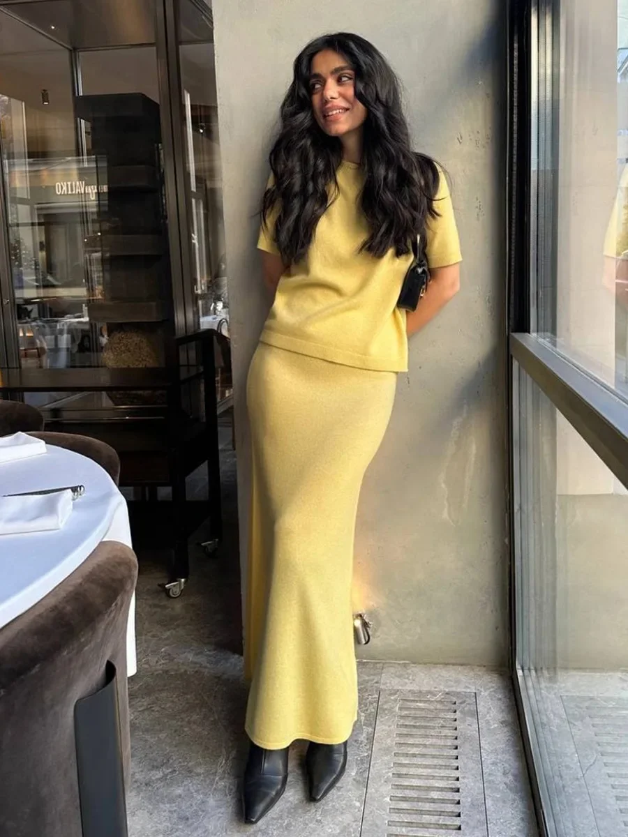 20 reviews for Wolfeel Summer New Soft Knit Set Women’s Short Sleeve Pullover Top Skirt Solid Color Elegant Minimalist Two Piece Set