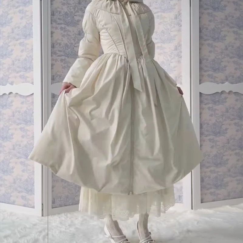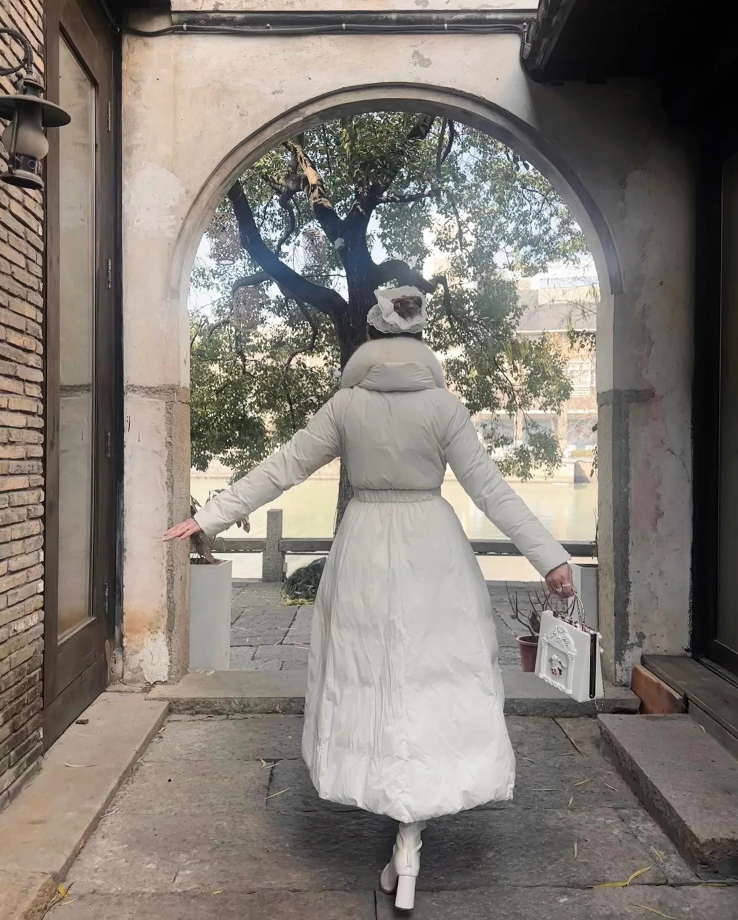9 reviews for Women Chic Solid Maxi Dress Puff Jacket Slim Fit S Line Big Hem Warm Long Robes Coat 2026 New Outfit Lady High Street Outwear