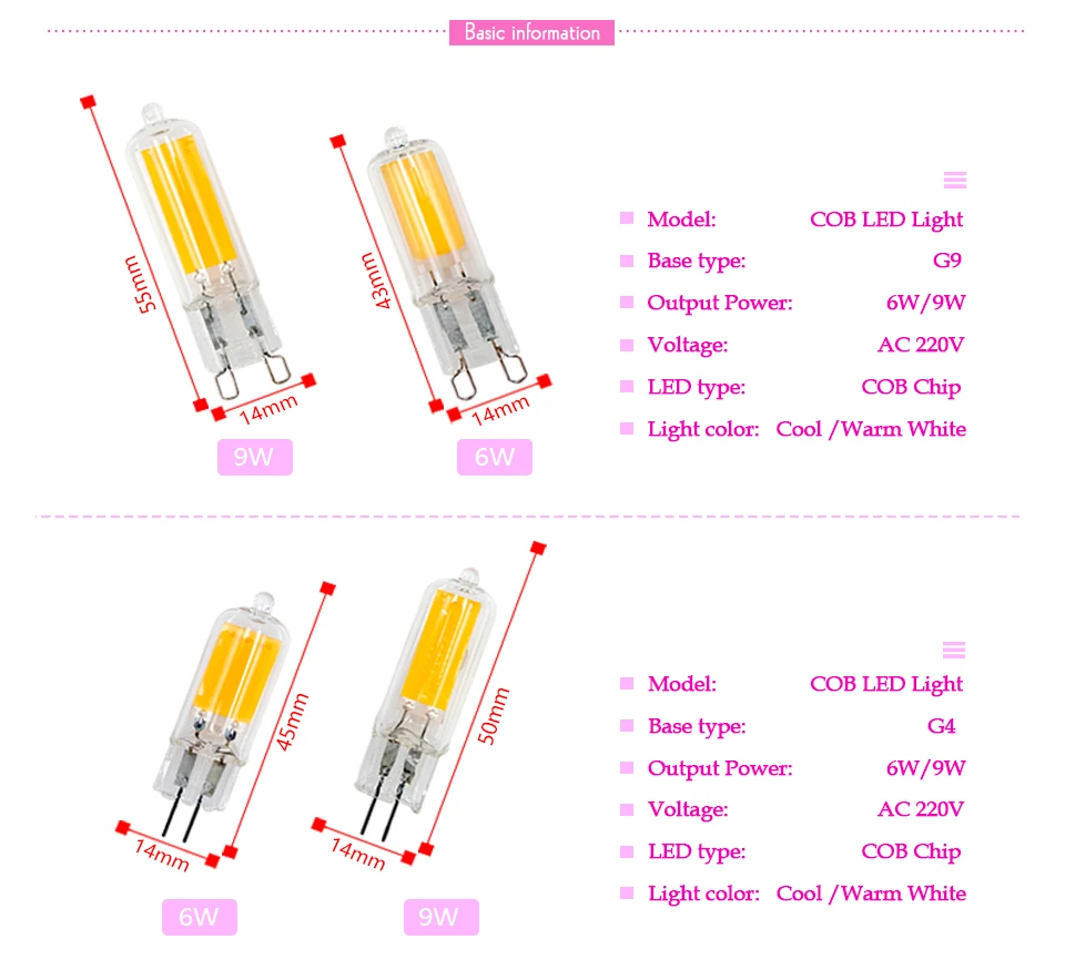 International standard G9 base, fits to all G9 light fixture.