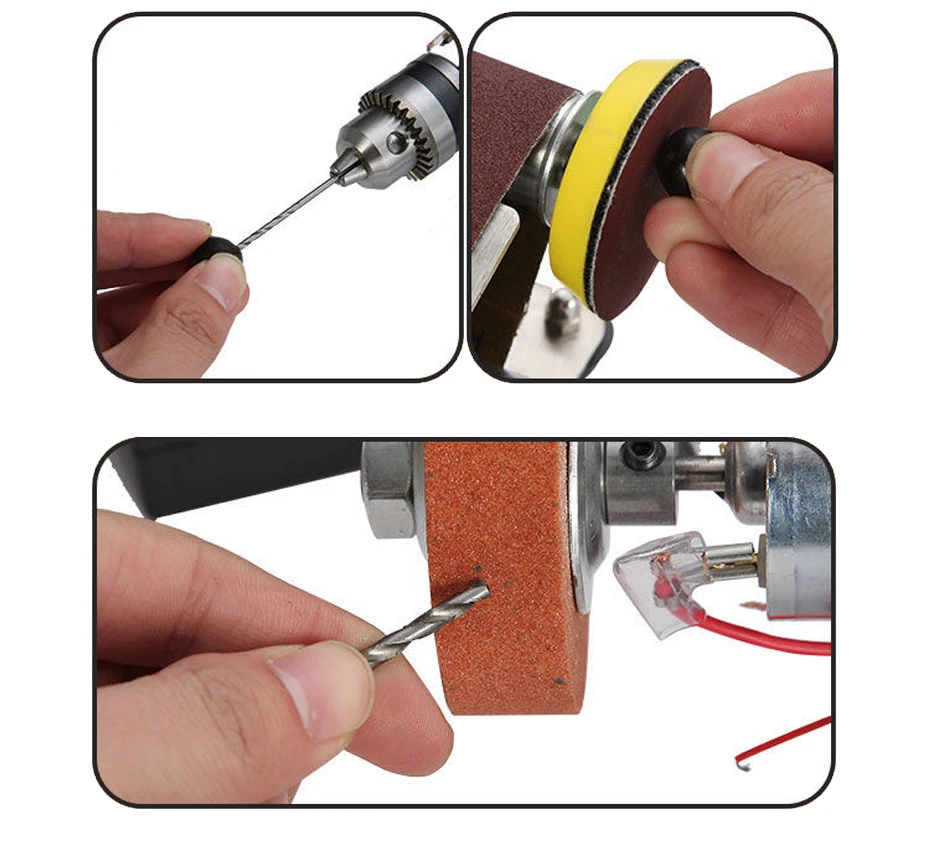 The abrasive belt wheels have built-in double bearing, non-slip design and smooth operation.