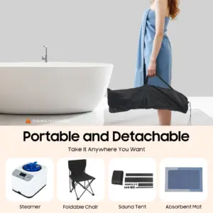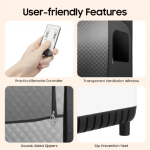 Powerful Function: It has a powerful (1350W) and 0.66 Gal capacity steamer, providing you with a strong sweat mode. The five-sided spacious design of the steam tent allows steam to cover your entire body and circulate, and its cotton material is used for heat insulation and heat retention, enhancing the sweat steam effect.