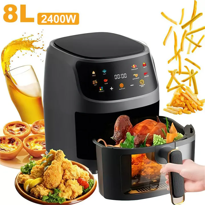 1400W 8L Air Fryer Without Oil Household Programmable Smart LED Touch AirFryer Thermal Cycle Oven Cooker French Fries Chicken