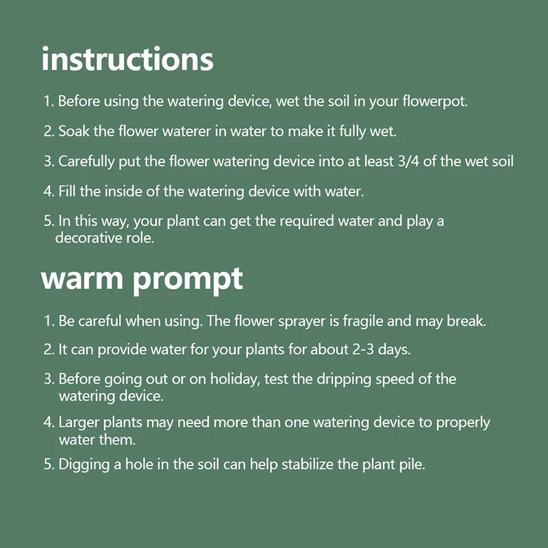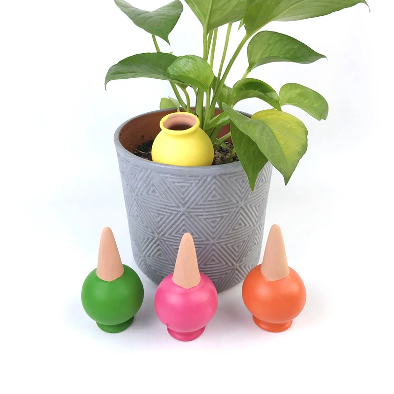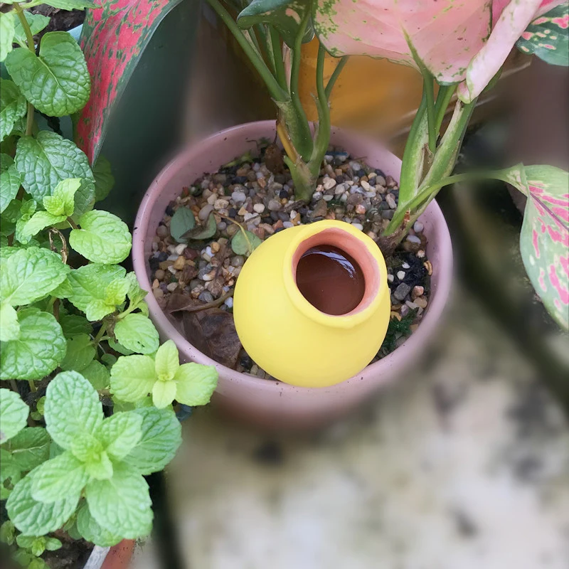 It is made of high-quality terra cotta, and its porous clay can automatically immerse water or nutrient solution into the soil to moisten plant roots. We recommend that it be used for regular watering and replenished every 4-7 days, depending on your adjustment.
