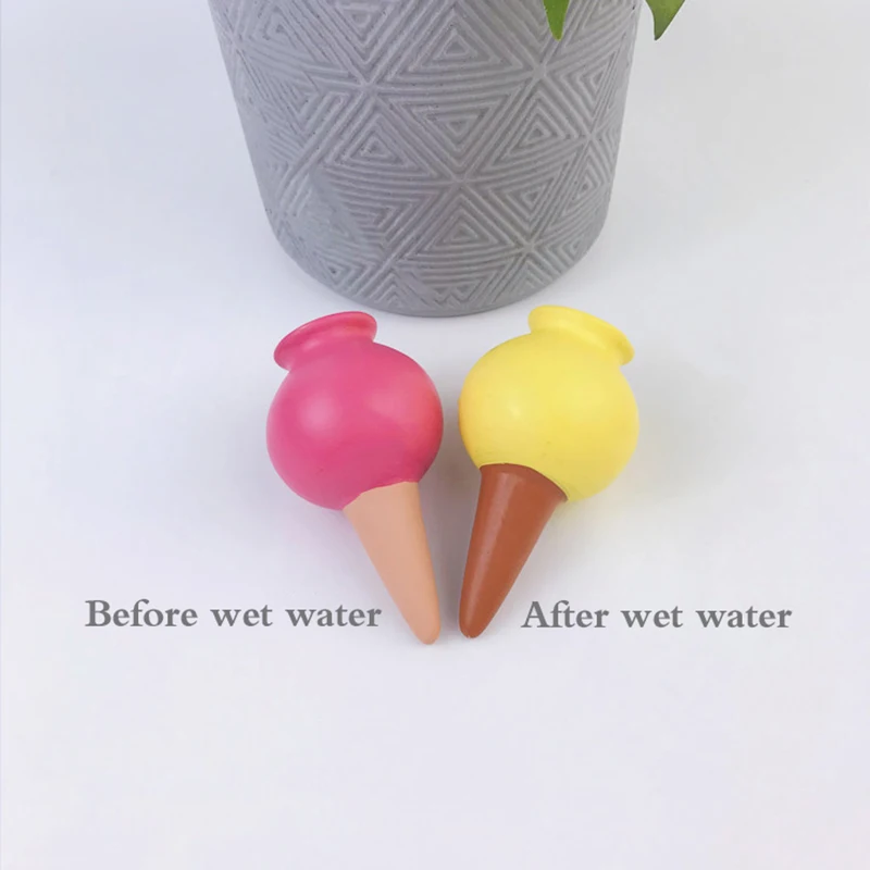 Just fill the hole with water and insert the watering device into the soil, and it will start to work and nourish your plants. The design of the upward opening makes it easy to inject water (better to see in the light).