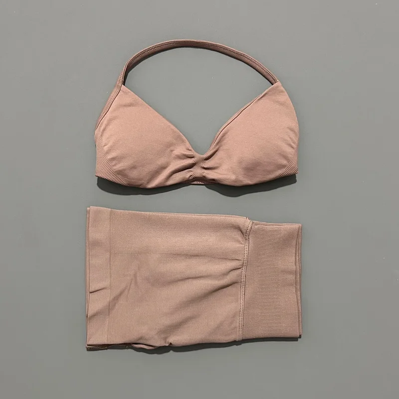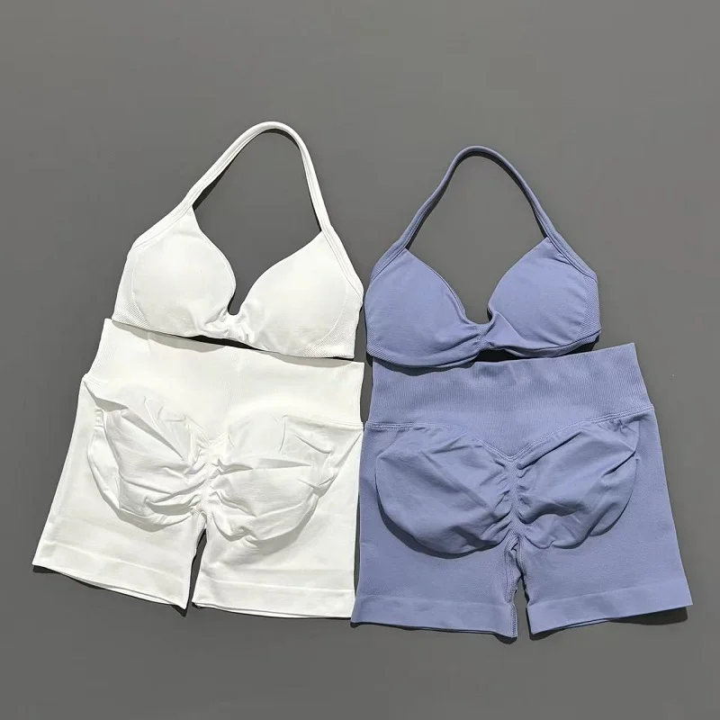 20 reviews for 2 Pieces Yoga Gym Set Women Seamless Strappy Yoga Bra High Waist Workout Scrunch Shorts Sports Set Fitness Clothes Sportswear