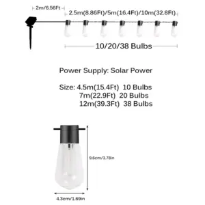 5 reviews for 20/38 Bulbs LED Solar String Lights Fairy Waterproof Patio Lamp For Outdoor Party Decoration Holiday Garland Garden Lamps