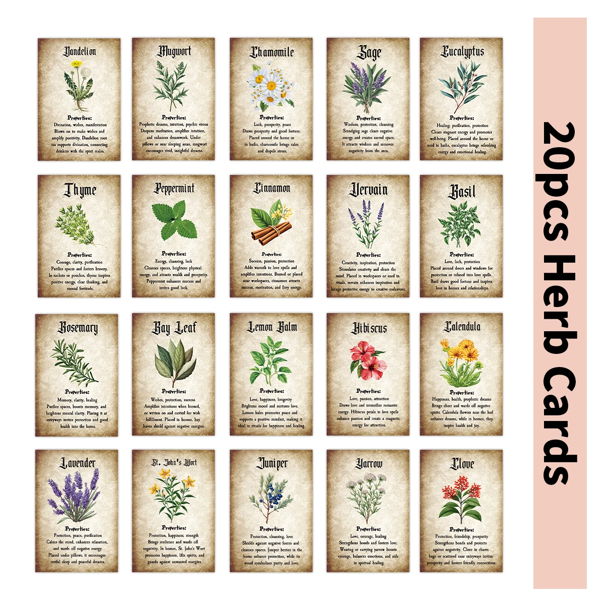 7 reviews for 20pcs Plant Herbal Cards With Botanical Illustrations Herb Infomation For Apothecary Journal,mystical Decor,witchcraft Herb Card