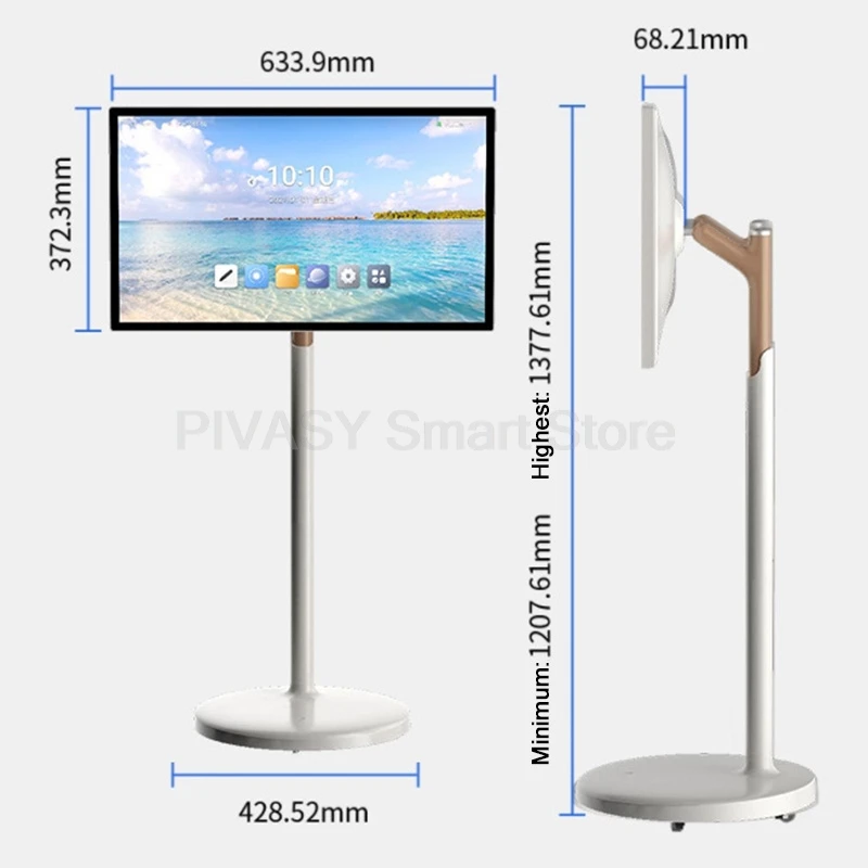 27 32Inch Smart TV 10-Point Touch Screen Monitor Mobile Stand Android12 for Fitness Home Party Office Wireless Casting Rotatable