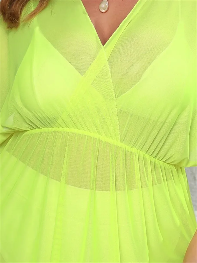 1 review for 3XL Plus Size Beach Cover Up for Women Bikini Coverup Large Green Transport Dress Split Tunic Elastic Waist 2025 Big Fat Woman