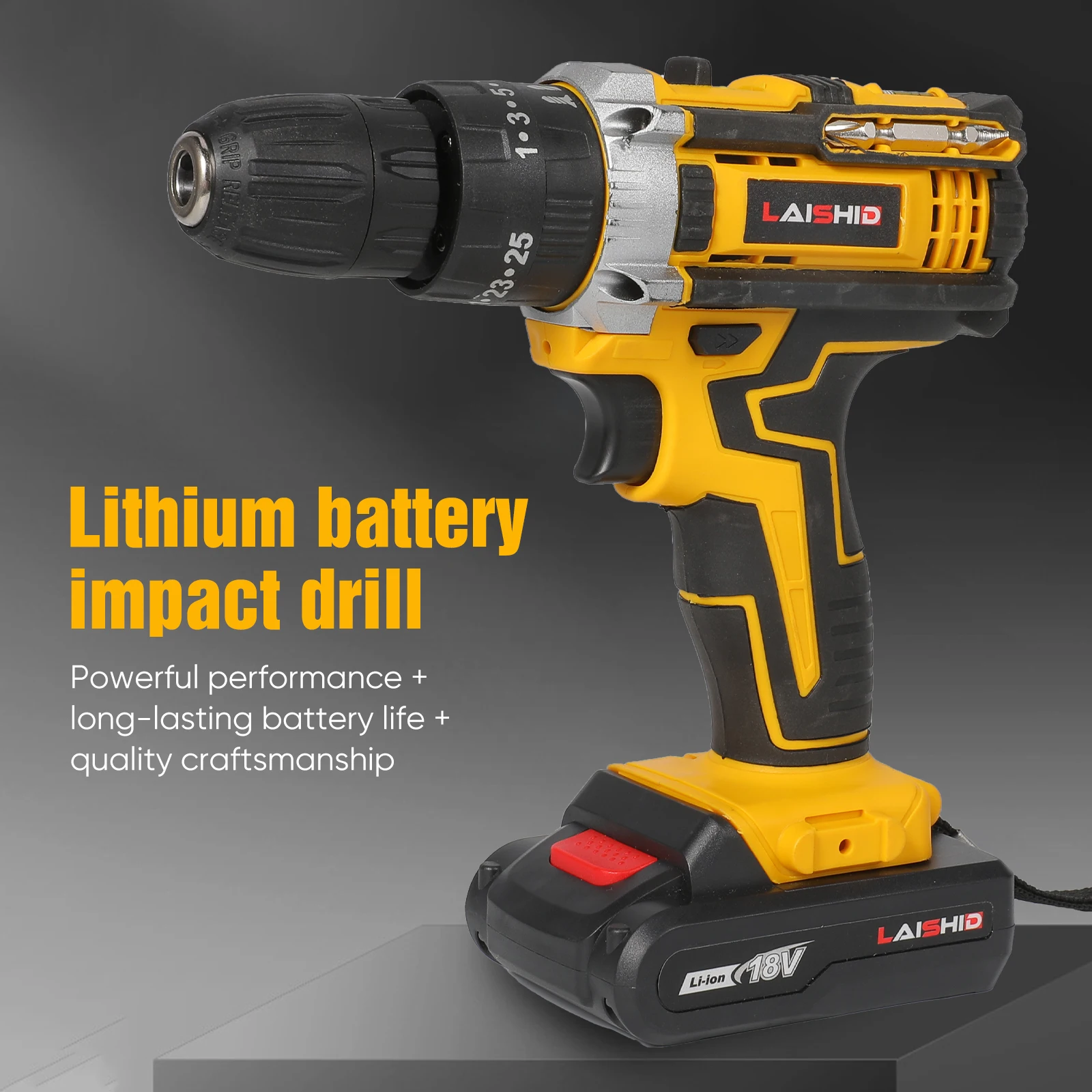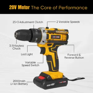 • 1.This 18V cordless drill set is an electric tool equipped with a brush motor, which has excellent performance. Its sturdy structure and keyless drill chuck make it comfortable and easy to use.