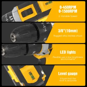 • 3. Equipped with work lights, this drill kit can ensure accuracy and precision even in low light conditions, increasing its practicality.