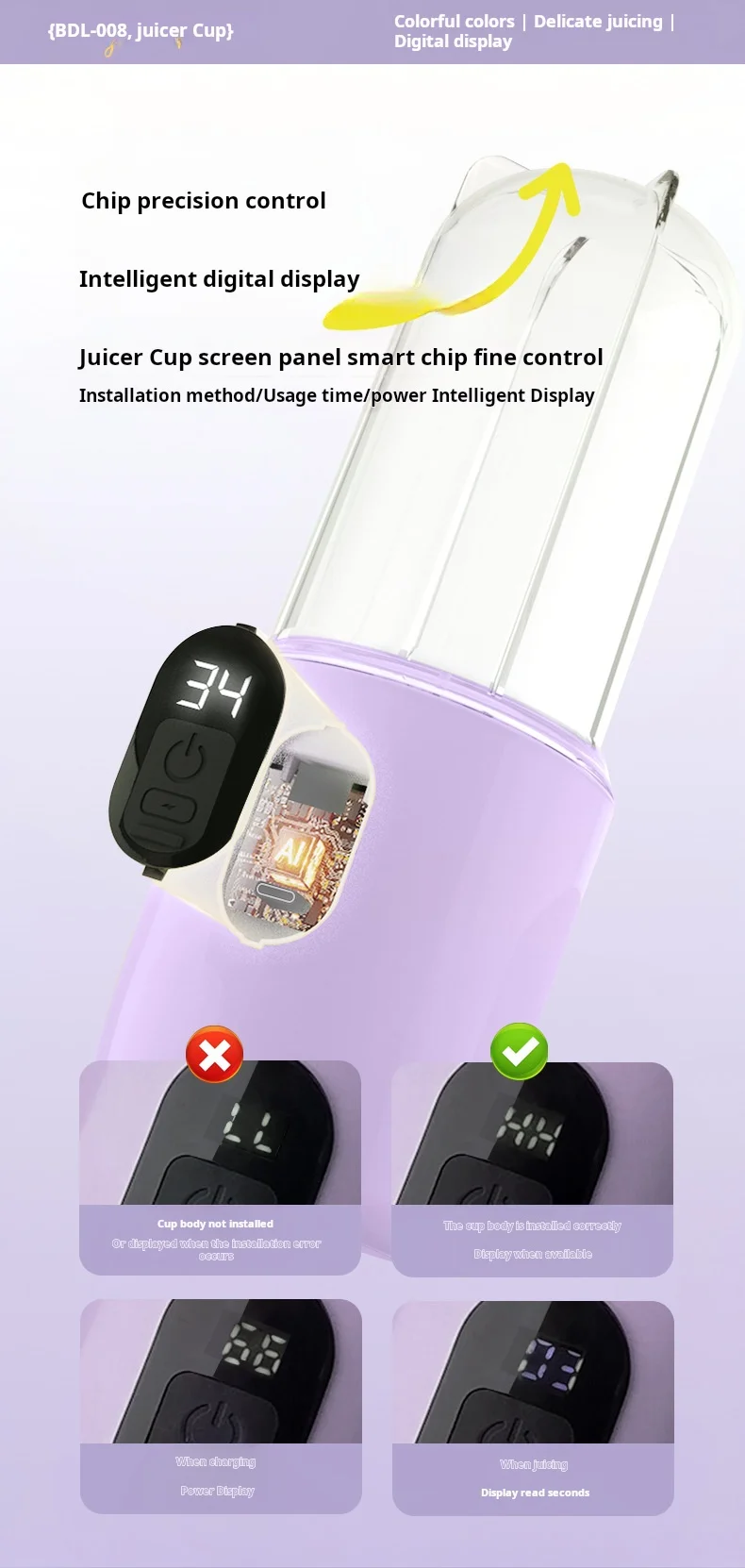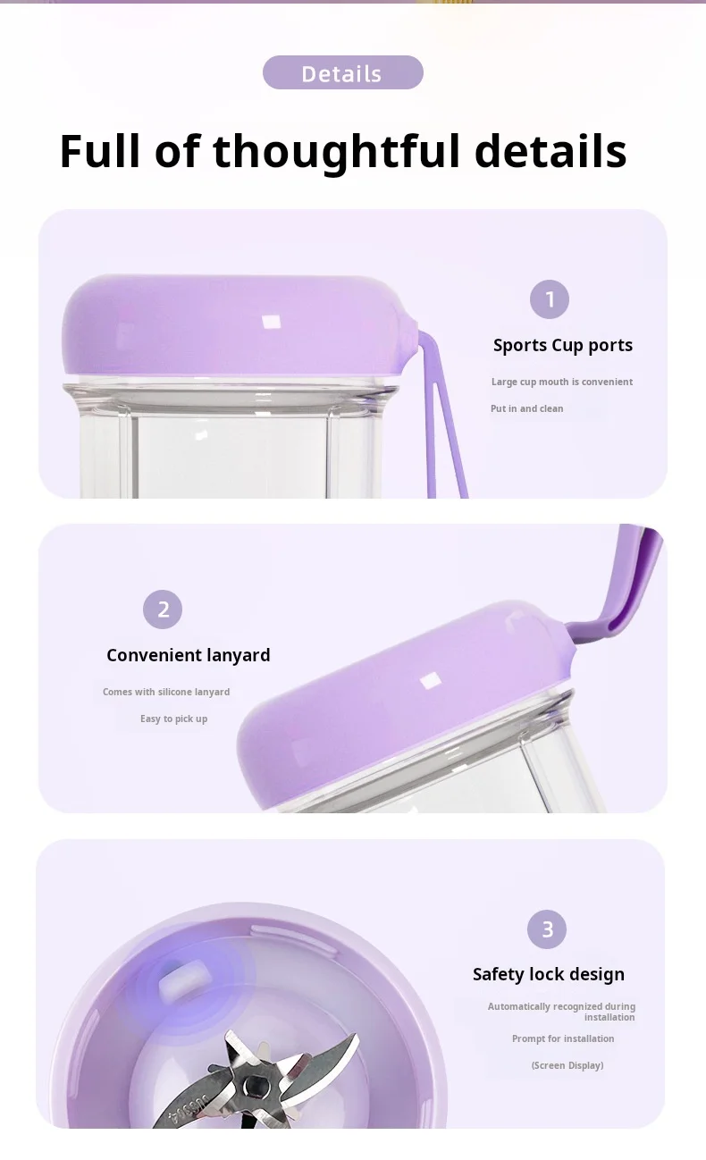 The personal blender uses plastic material, which is light and durable and easy to clean. When the fresh and delicious juice is ready, you can drink it as it is, or transfer it to the other cup.
