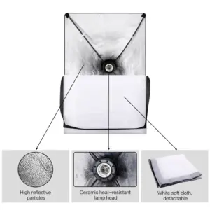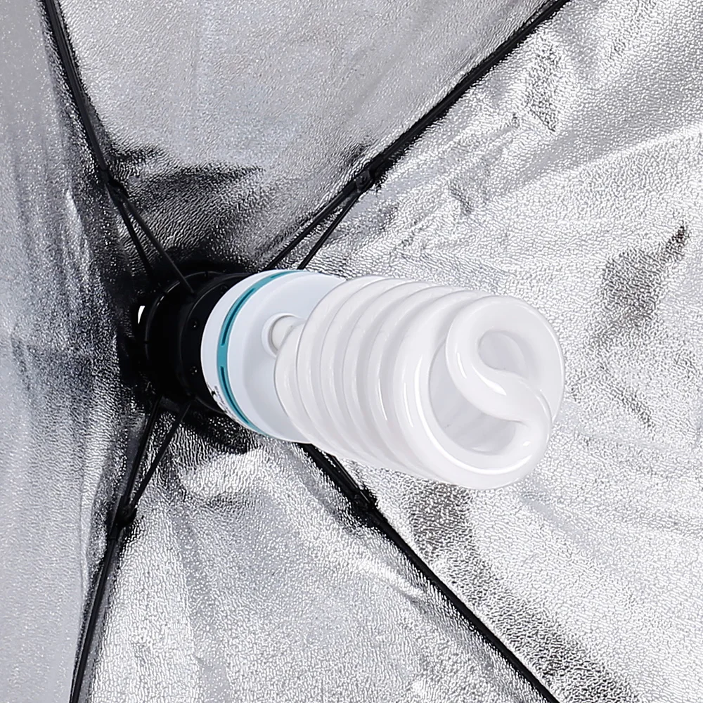 50x70CM single lamp head softbox:White foldable soft cloth,High quality reflective particle.Silver internal face to minimize light loss and maximize light spread. Safe and non-toxic polyester fiber,4 flexible connecting rods.