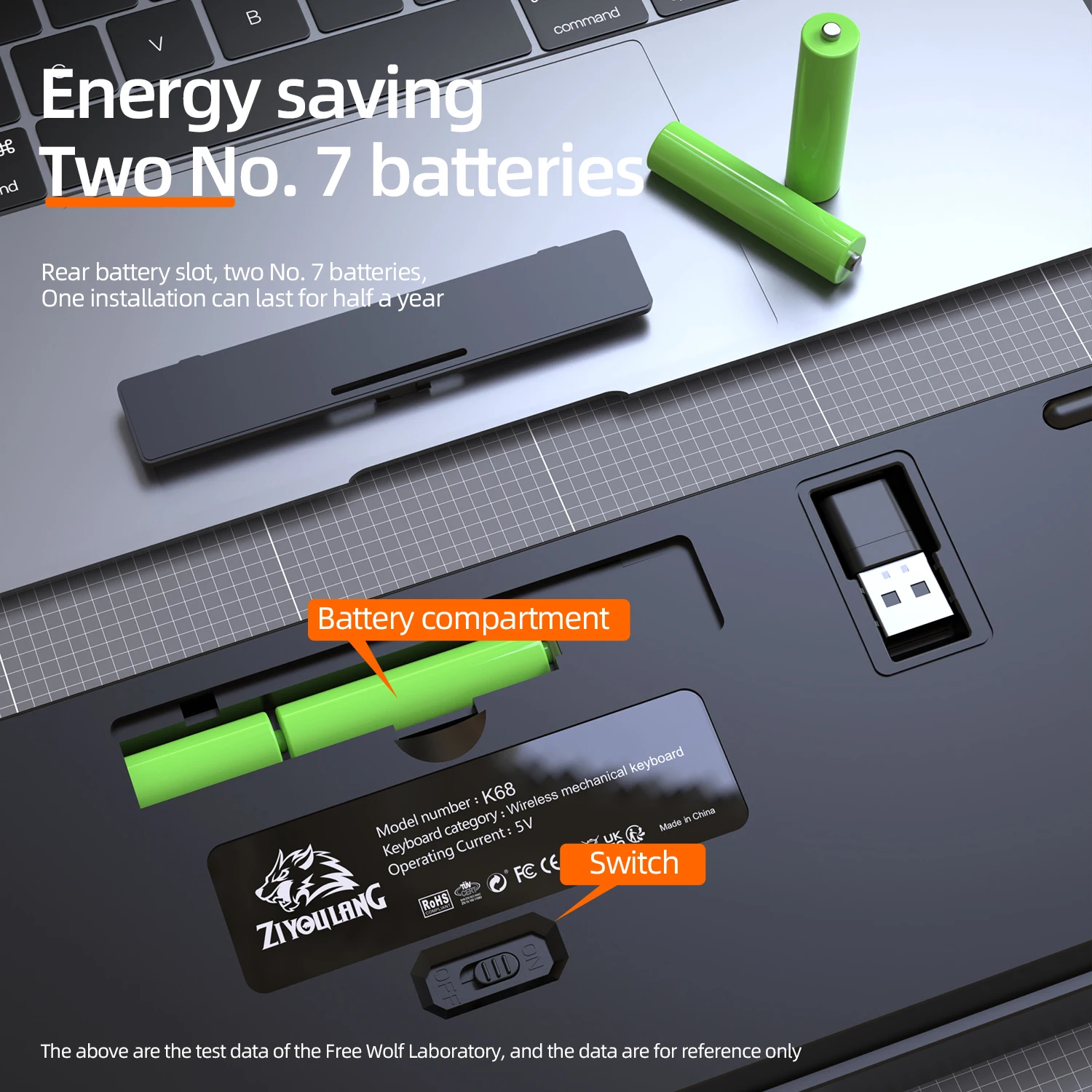 • Dual Mode Hot-Swappable :Easily switch between bluetooth and wireless modes with the dual mode hot-swappable feature.
