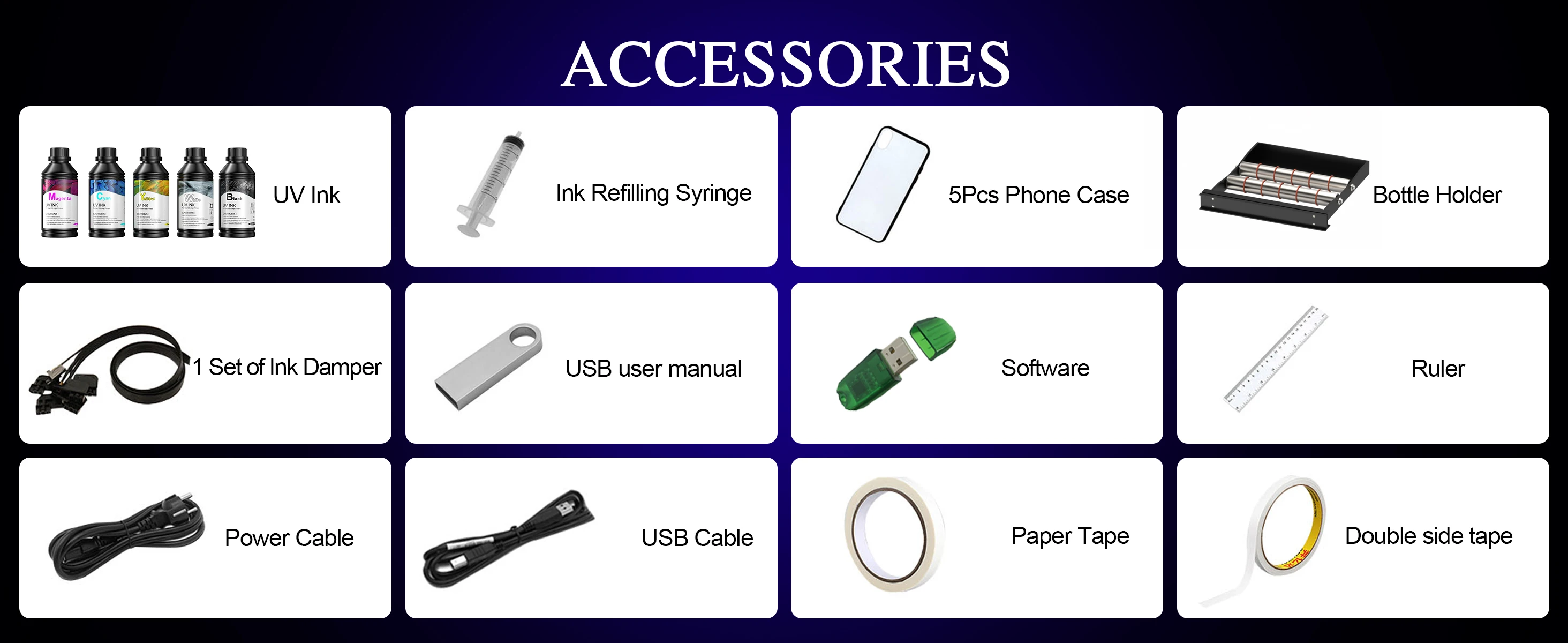 Each package all includes:Bottle holder*1 Software*1 Video Instruction*1