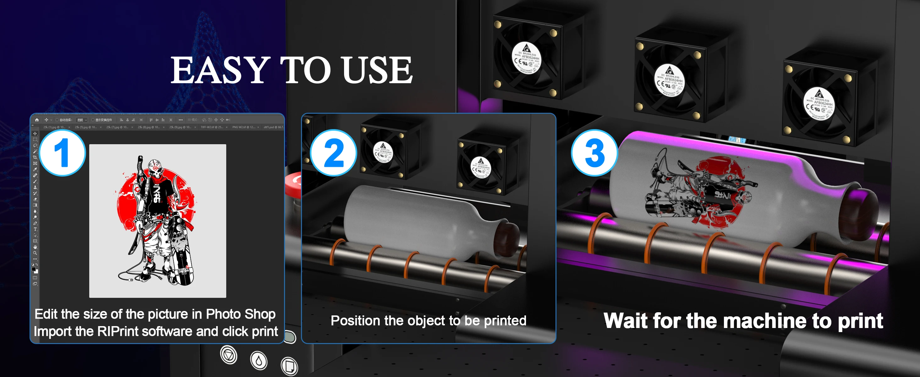 The maximum printing size of the machine:32CM*50CM, Printable bottle diameter: 20-110mm