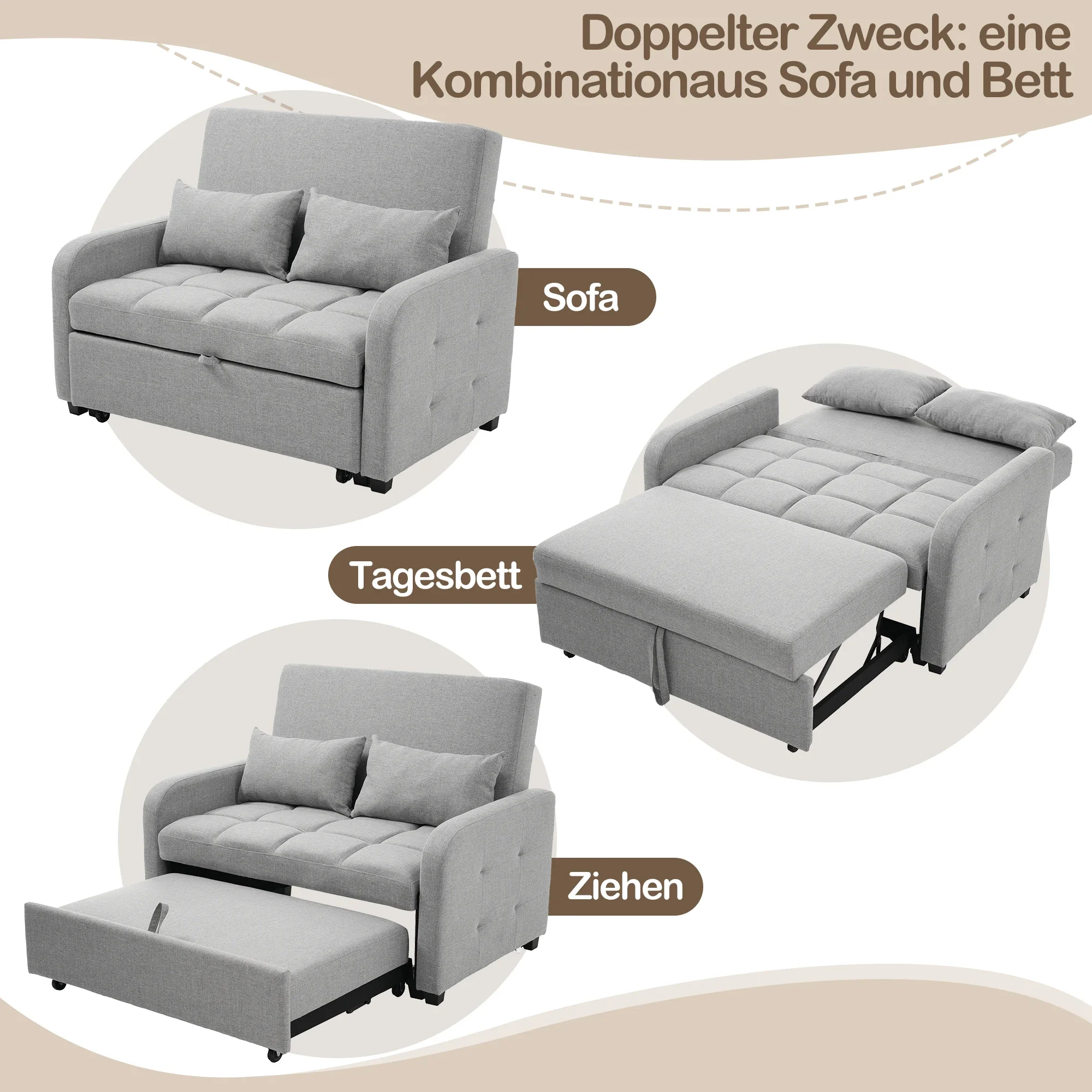 - Double-function design: Perfect combination of sofa and bed – easily convertible from a comfortable sofa to a spacious bed, ideal for different needs.