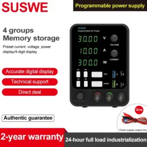 SUSWE new series products. This model is a miniature switching DC power supply. The output voltage and The output voltage and current can be controlled and adjusted by variable resistors respectively, so it provides more convenience and accuracy in the adjustment of voltage and current. The panel also provides high-precision two/three-window digital tube display of voltage, current and power, so that users can intuitively see the current use status and various parameters of the machine