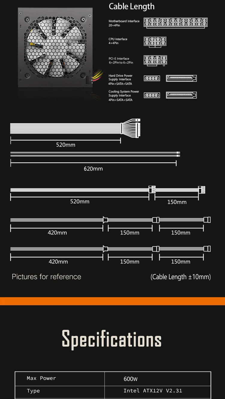 1: Power supply size: 140mm * 150mm * 86mm