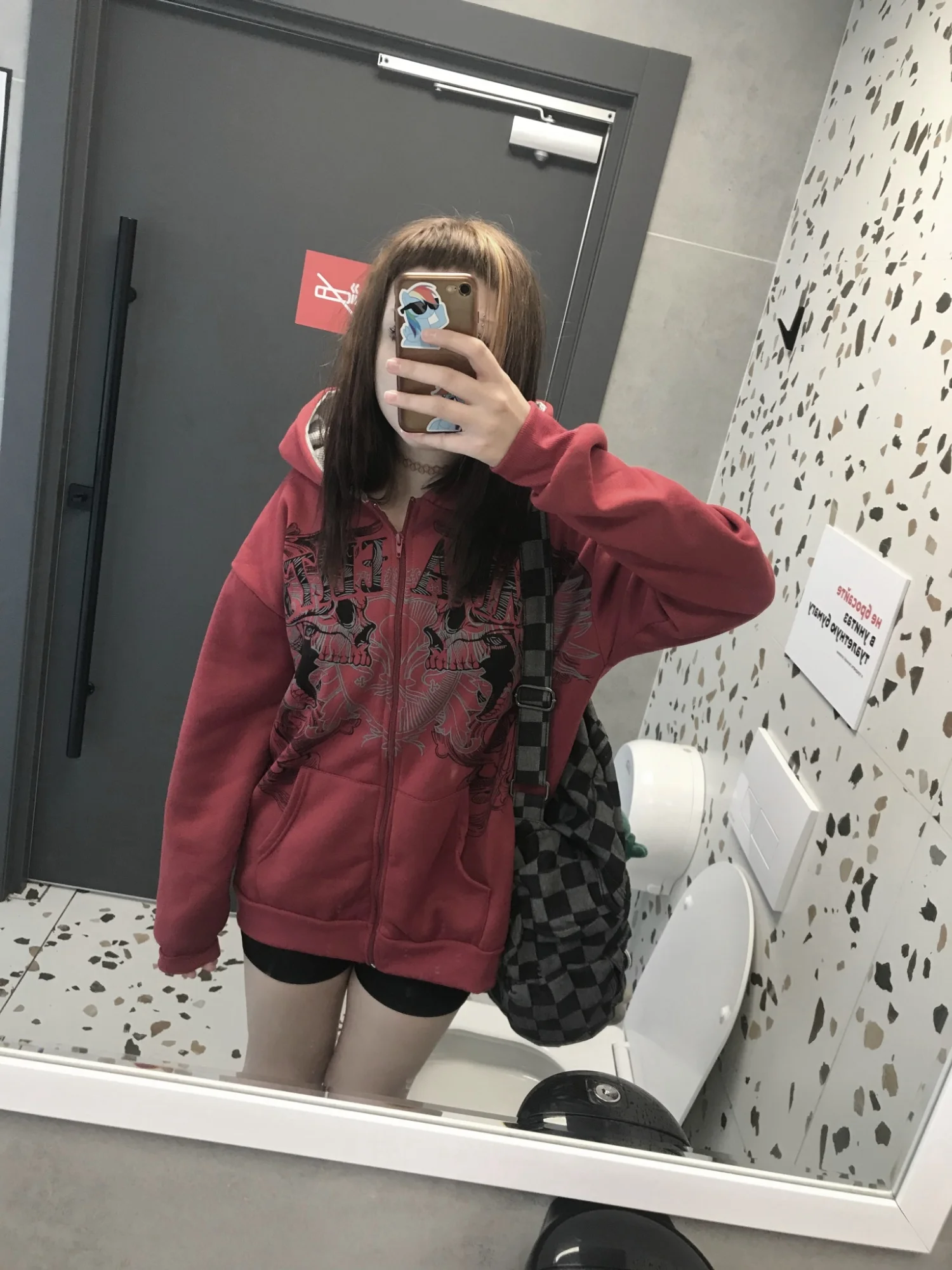American Y2K New Hip Hop Trend Zipper Hoodie Women Street Casual Loose Joker Vintage Sweatshirt Unisex Fleece Padded Warm Hoodie photo review