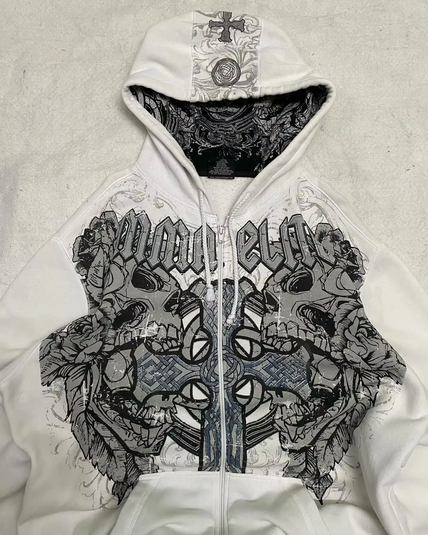 American Y2K New Hip Hop Trend Zipper Hoodie Women Street Casual Loose Joker Vintage Sweatshirt Unisex Fleece Padded Warm Hoodie