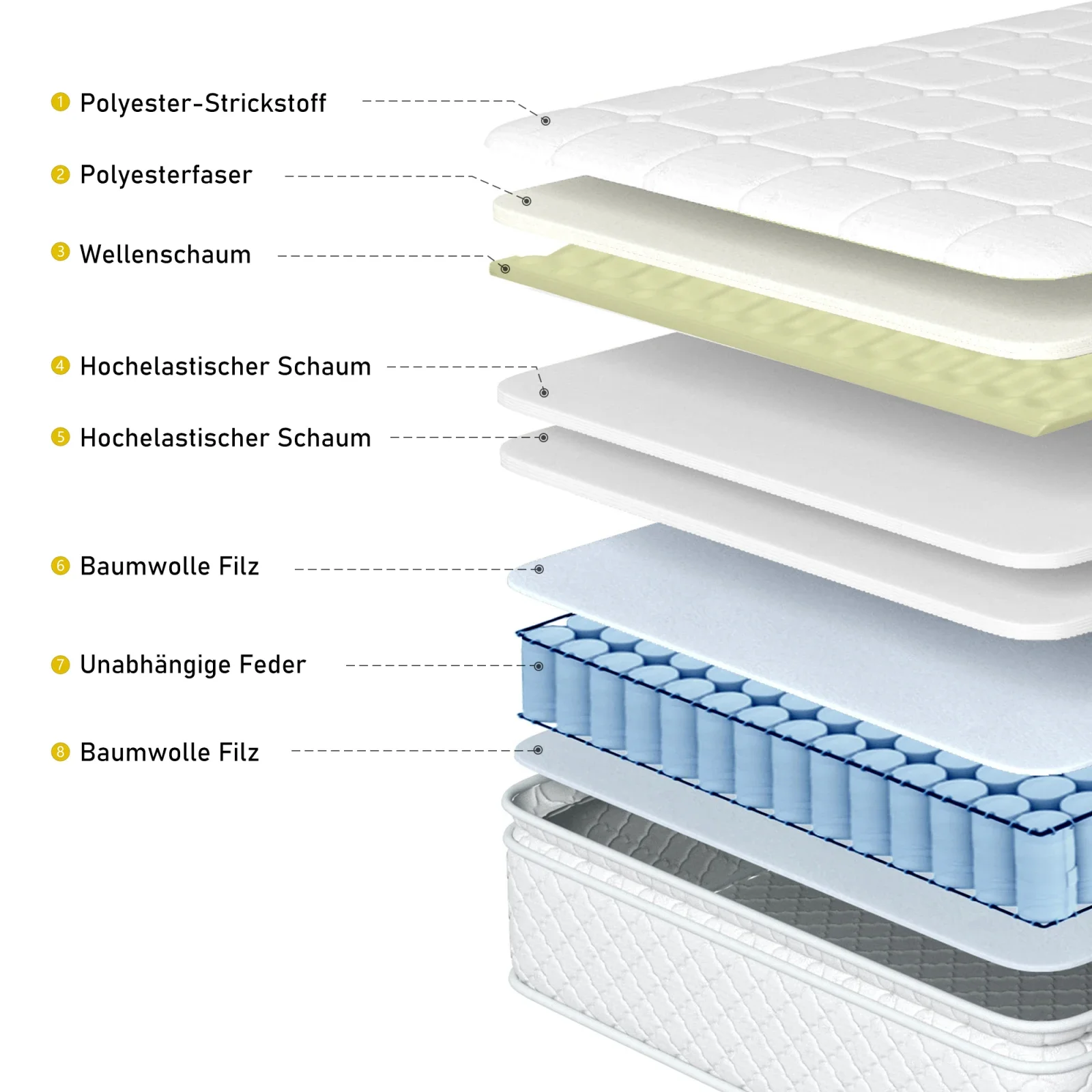 1.Comfortable sleeping experience at an excellent value for money: We offer you a well-designed mattress collection in sizes 160 cm – to meet the needs of families. The thickness of the mattress is approx. 25 cm, and the careful configuration of the double-layer sponge structure guarantees the right amount of softness and support, giving you and your family the ultimate sleeping pleasure.MADE TO LAST – Durably designed to last you for years to come; twin mattress supports a maximum weight of 250 lbs, while all other sizes can support up to 500 Lbs