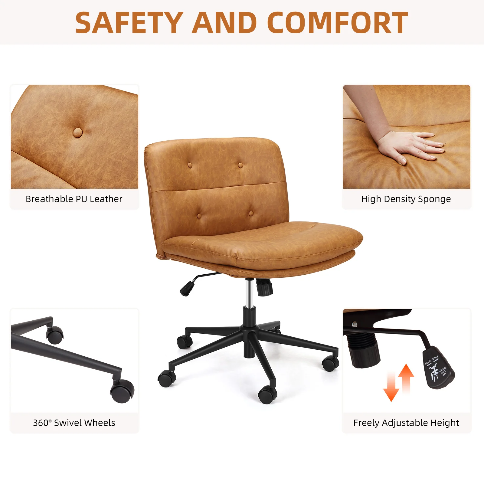 【High-quality PU fabric】 The criss-cross desk chair is made of high-quality PU leather with superior durability. Unlike fabric chairs, this wide desk chair with casters is easy to care for and can be easily cleaned with a damp cloth. The soft and skin-friendly texture of the PU leather ensures long-lasting comfort, even with extended use.