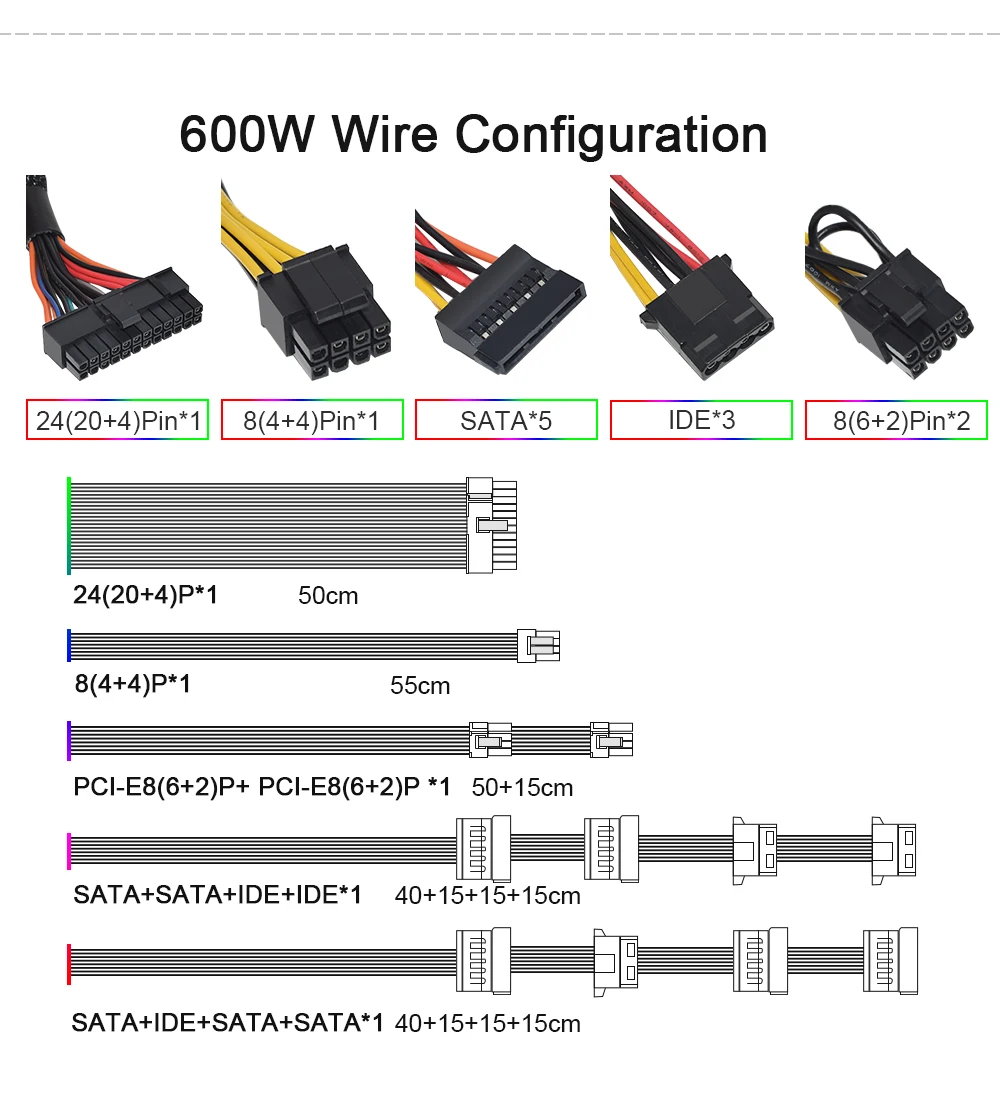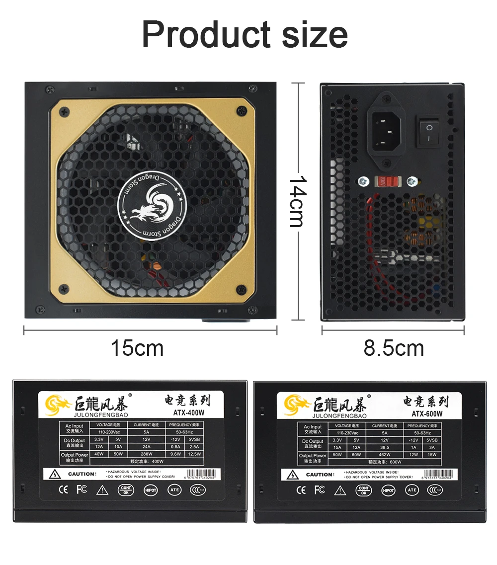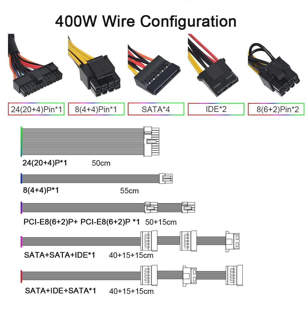 • High Power Output :With an output power ranging from 400W to 600W, this PSU ensures optimal power supply for your PC, supporting high-end video games and heavy-duty applications.