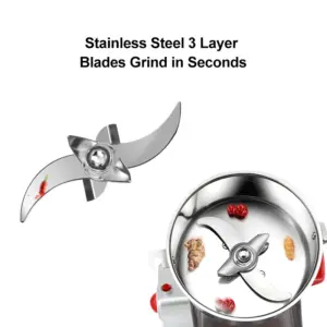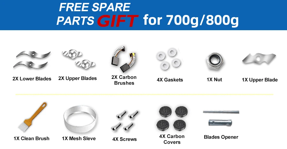 Updated 800G Grinder: Open-cover-stop Safety Design. Automatically stop when the lid is opened. The buckle design can tight the cover to prevent powder from flying