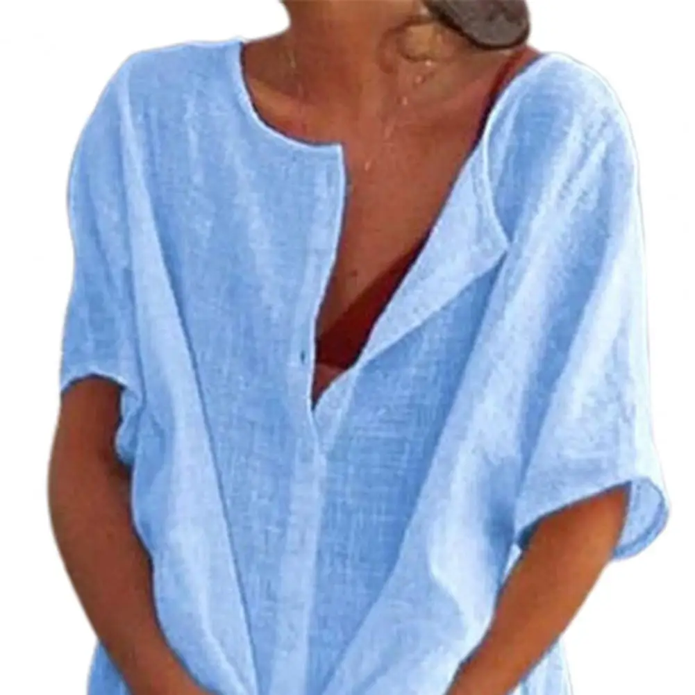 It is the solid color design that makes this shirt very simple and casual, and easy to match with clothes. And it is loose, very comfortable to wear.