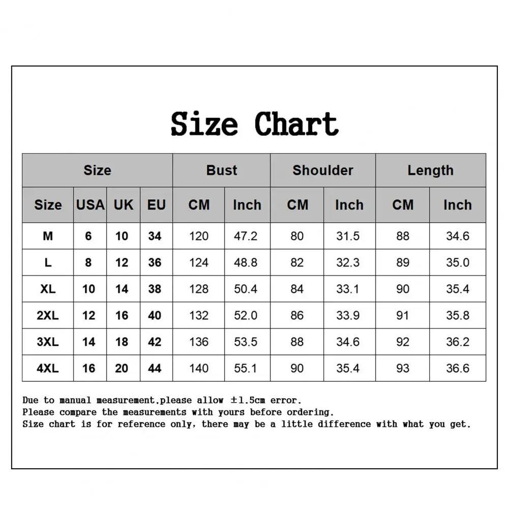 Size: 4XL, Length: 93cm/36.6″, Shoulder: 90cm/35.4″, Neck Width: 25.5cm/10″, Bust: 140cm/55.1″ (Approx.)