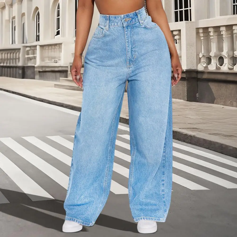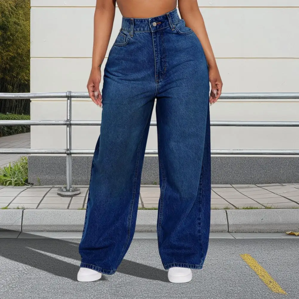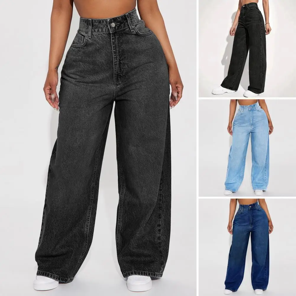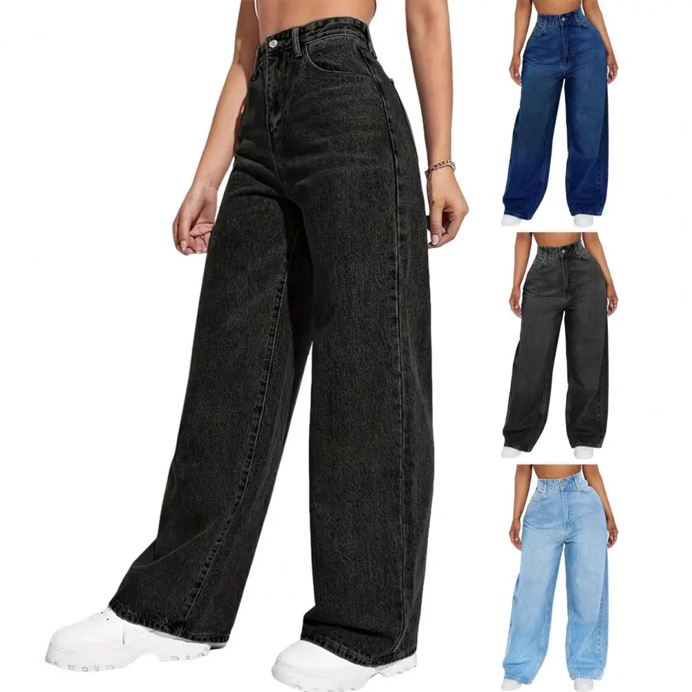 Casual Women’s Wide Leg Jeans High Waisted Stretchy Boyfriend Denim Pants Straight Leg Loose Baggy Jeans with Pockets