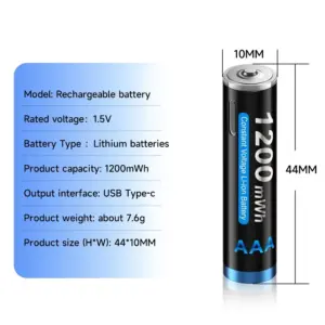 - Model Number: 1.5V AAA Li-ion Rechargeable Battery