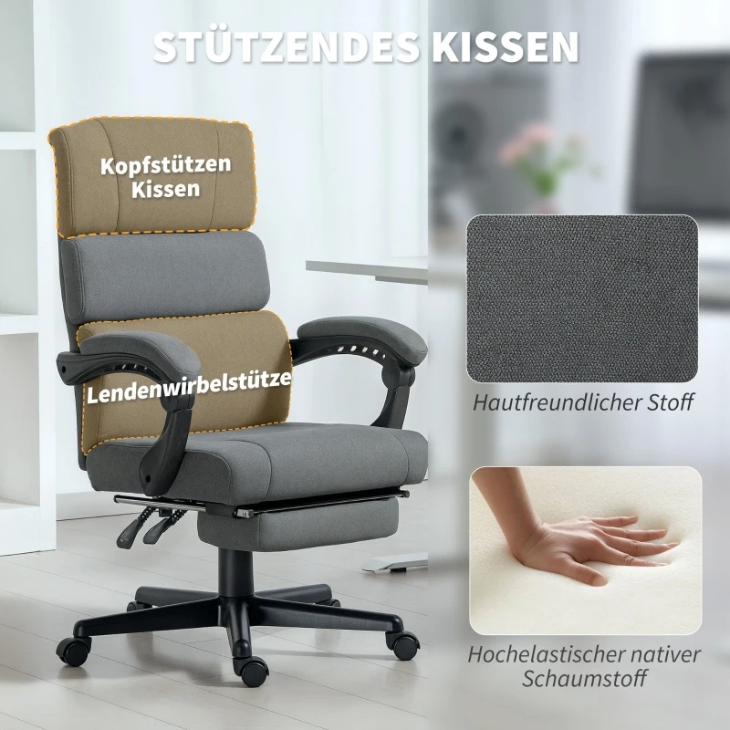 2. Adjustable tilt and height: Equipped with a backrest that can be locked at up to 135° and an extendable footrest, ideal for a relaxing break or reading. The seat height of the computer chair can be individually adjusted.
