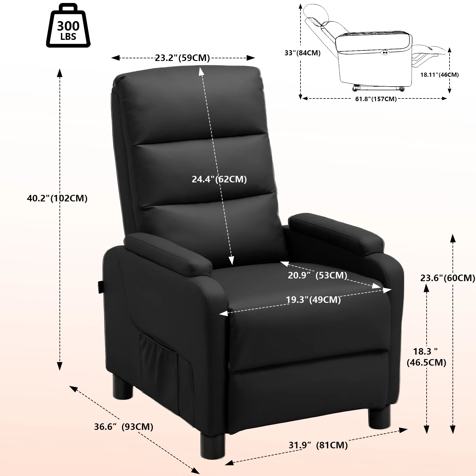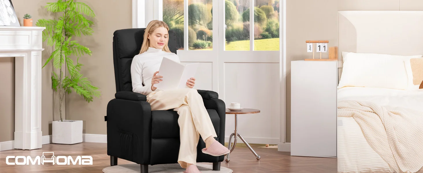 Adjustable Relax armchair:COMHOMA Adjustable armchair allows you to enjoy your preferred seating positions, whether you prefer to sit straight, put your legs up or lying flat. The backrest is adjustable from 90-160 ° and can be adjusted according to your desired sitting posture.