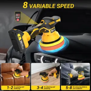The CONENTOOL cordless polisher features a powerful pure copper motor, delivering stronger power, better polishing results, and lower noise. The speed is adjustable from 1 to 8 levels, ranging from 2500 to 5000 RPM. Multiple speed settings are available. Ideal for car detailing, cabinet polishing, and waxing, leaving your car sparkling like a mirror.